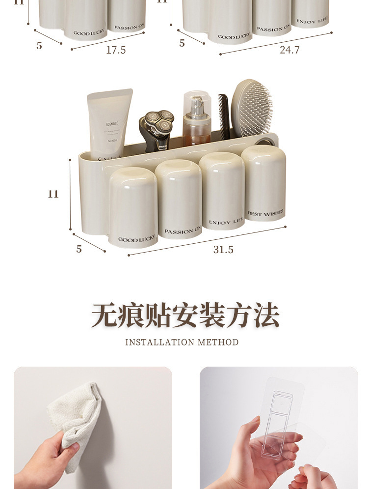 商品重量:两杯0.383kg;三杯0.525kg;四杯0.681kg;两杯+挤牙膏器0.491kg;三杯+挤牙膏器0.639kg;四杯+挤牙膏器0.794kg;单个挤牙膏器0.107kg
