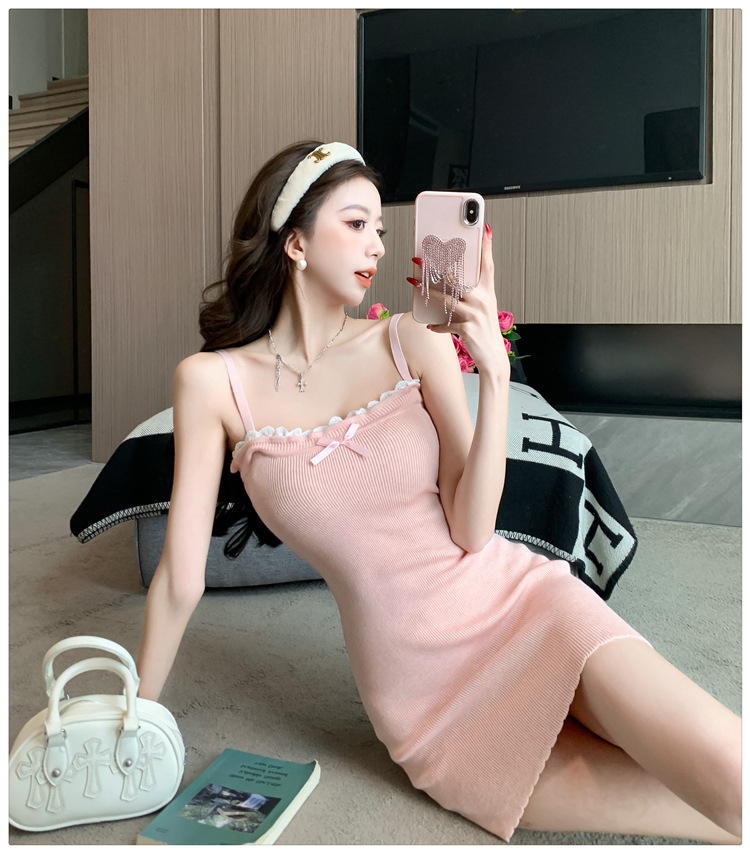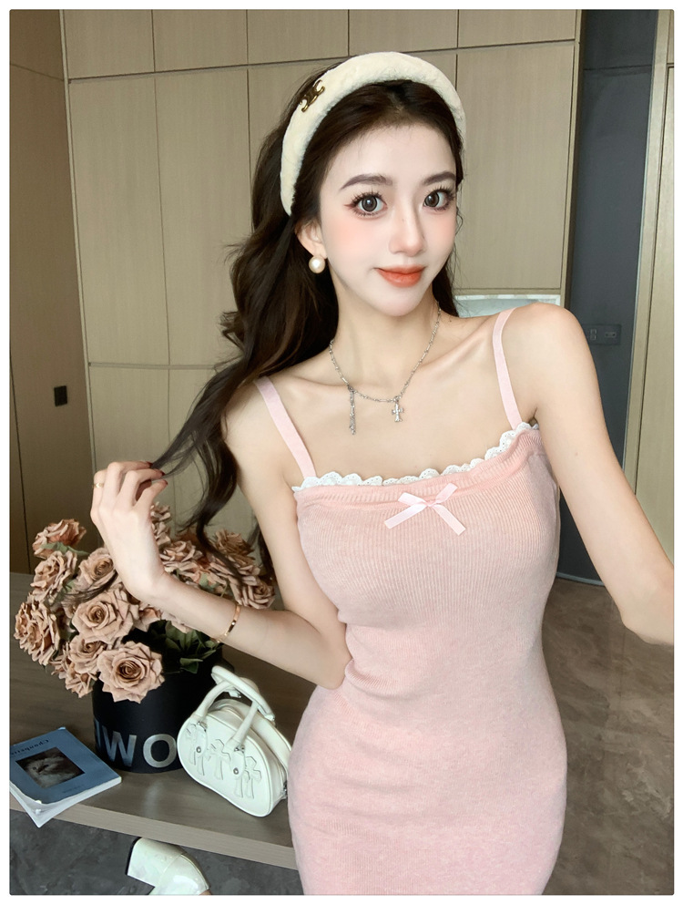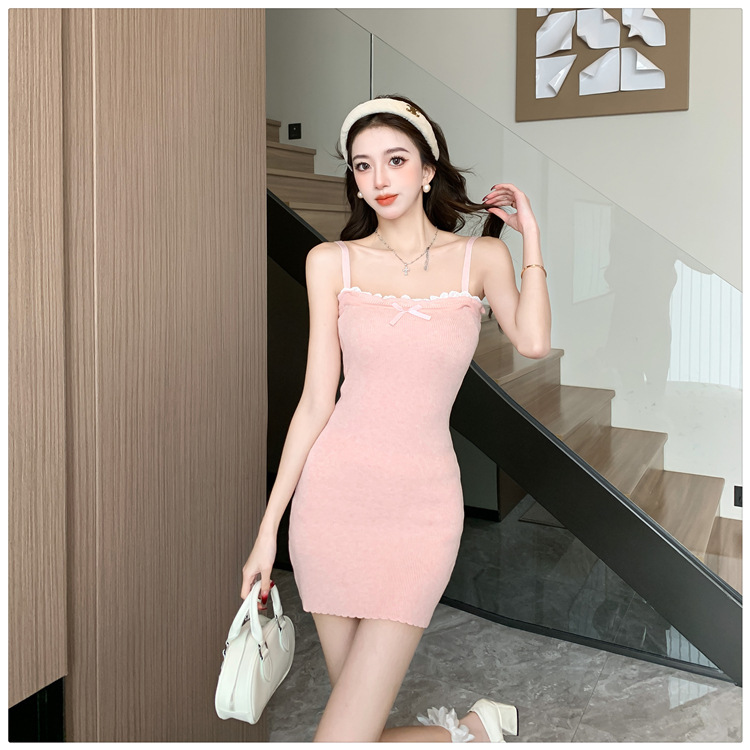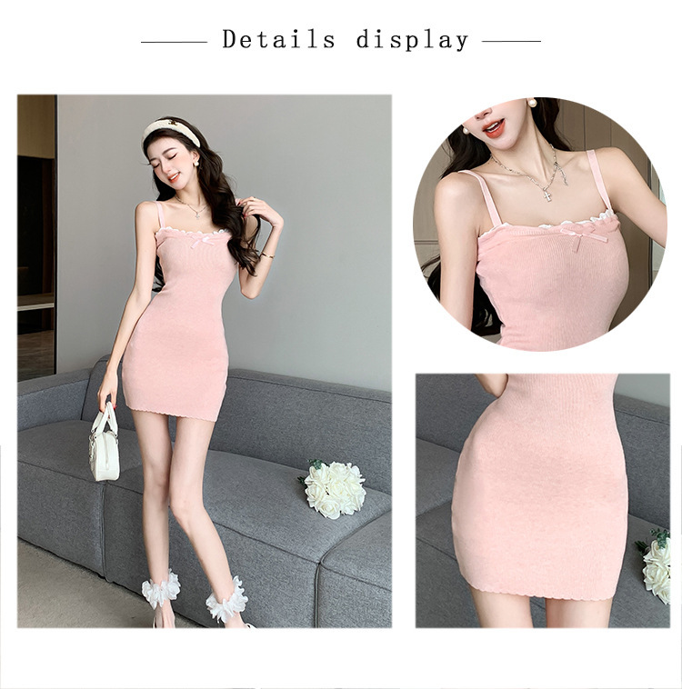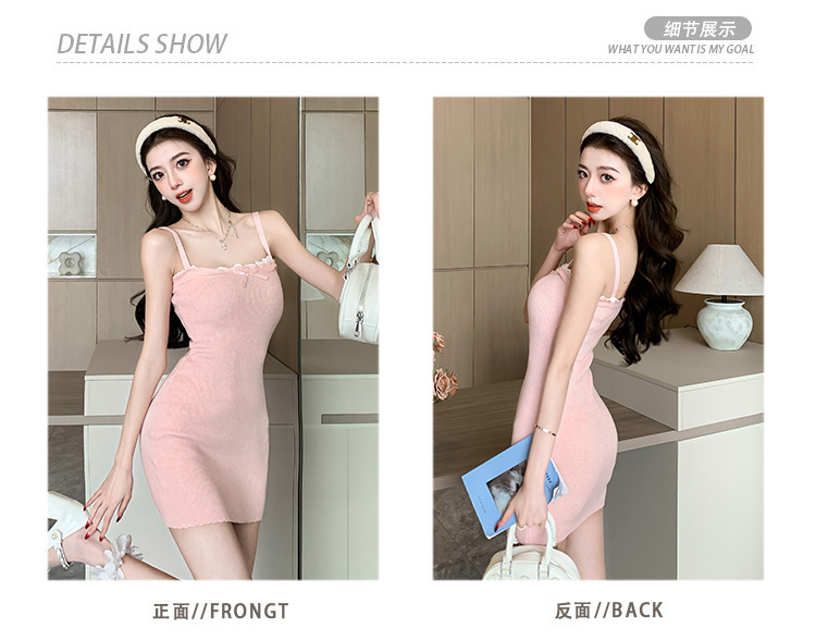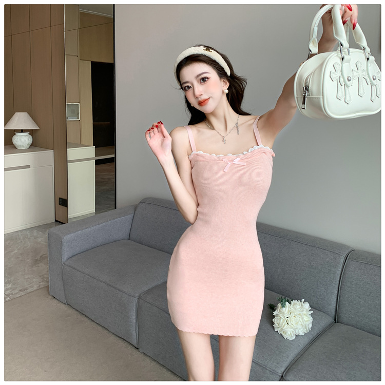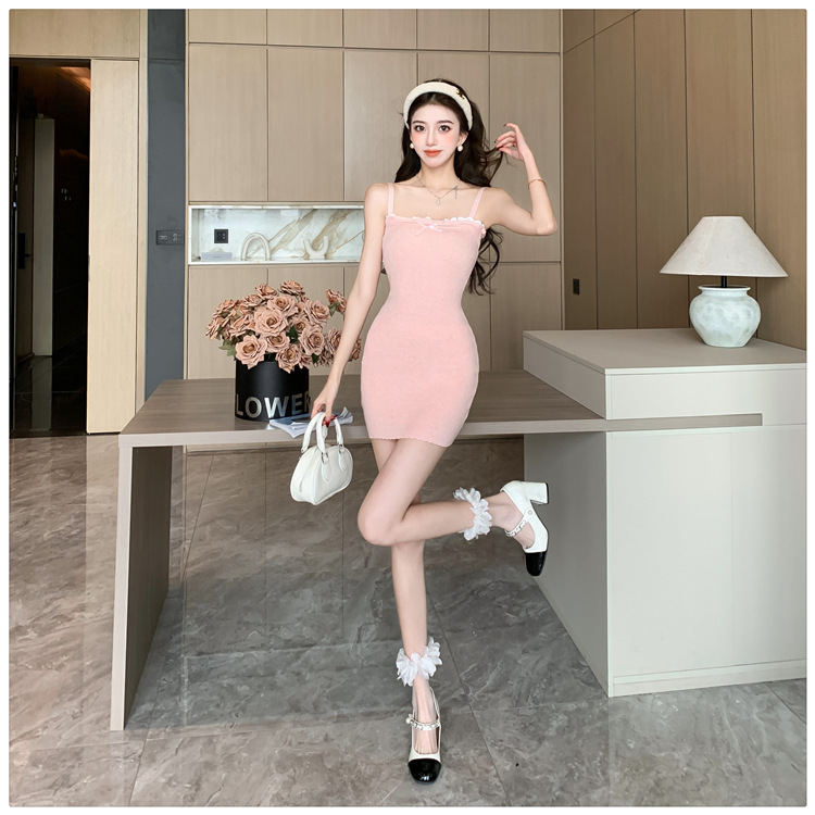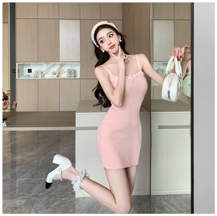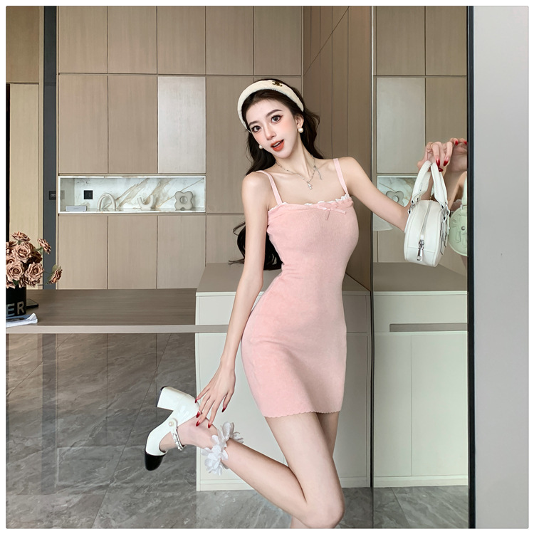 2024 여름 새로운 핑크 순수한 욕망 섹시한 슬링 원피스 엉덩이 꽉 허리 내부 스커트 달콤한 매운 하이 엔드