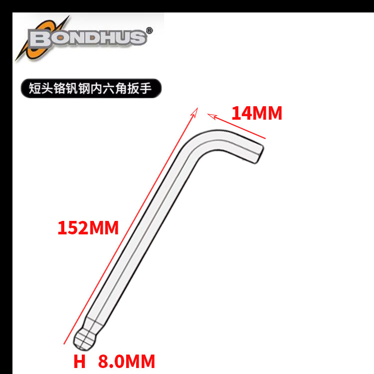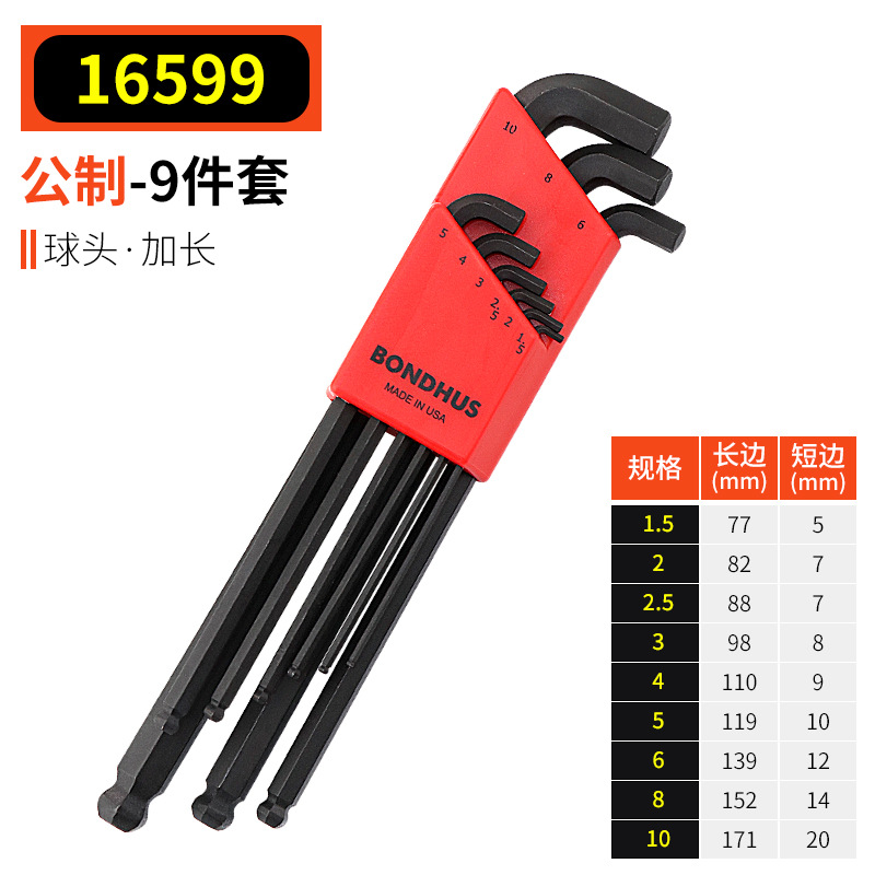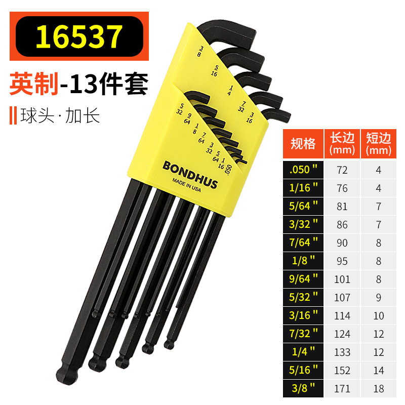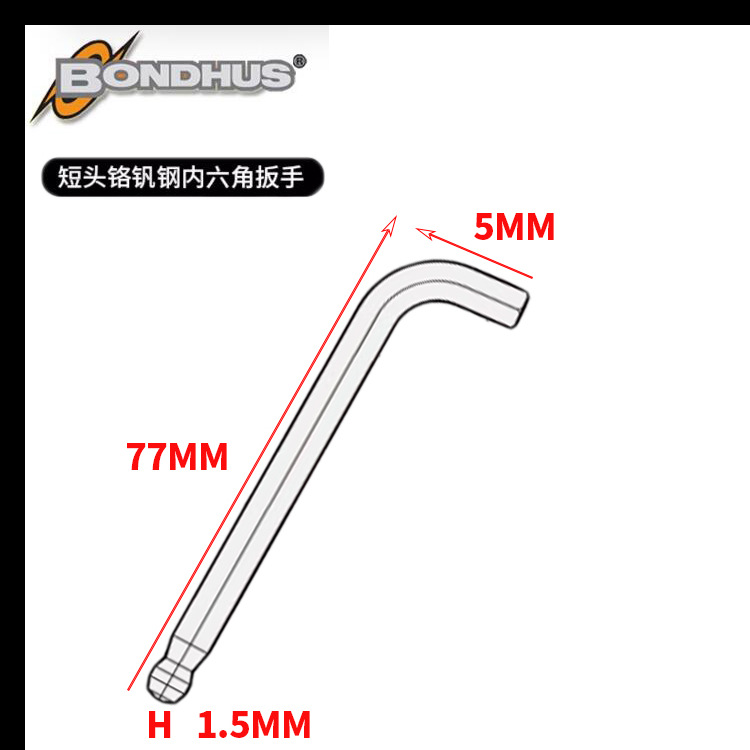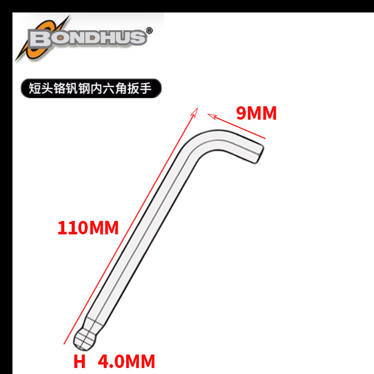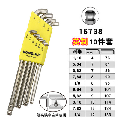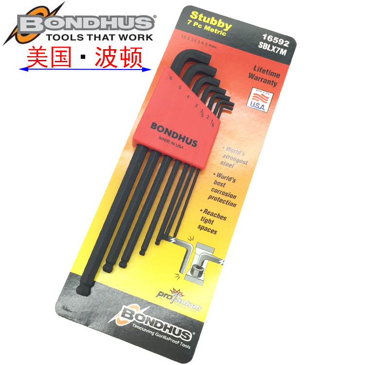 BONDHUS American Bolton 짧은 머리 길어진 볼 헤드 싱글 Allen 렌치 울트라 짧은 꼬리 육각형 키 16599