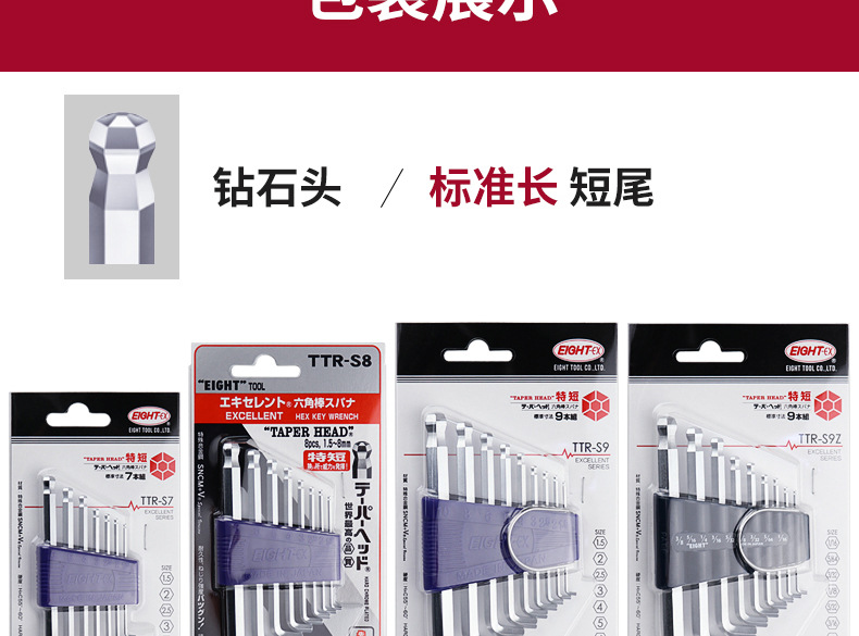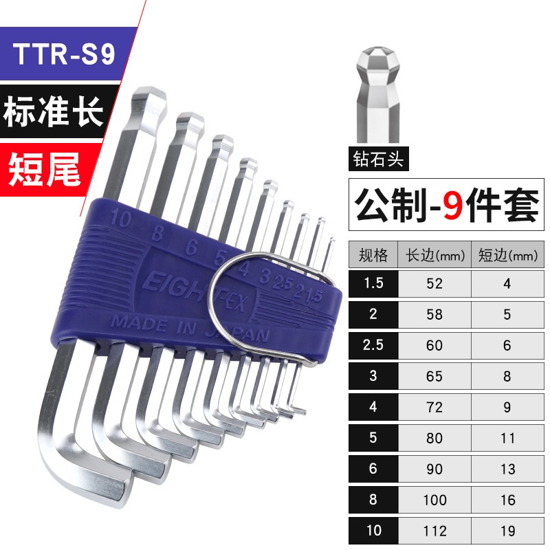 수입 EIGHT 베일리 일본 짧은 팔꿈치 앨런 렌치 세트 짧은 사이드 볼 헤드 TTR-S9 TTS-7/9