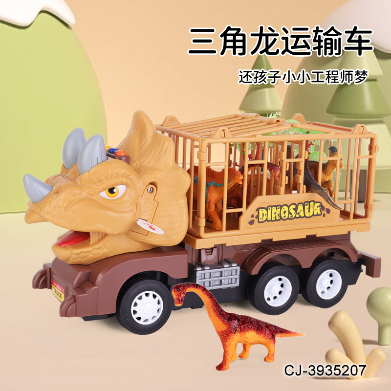 국경 간 어린이 장난감 관성 자동차 Triceratops 수송 자동차 공룡 엔지니어링 자동차 시작 음향 효과스토어 가기