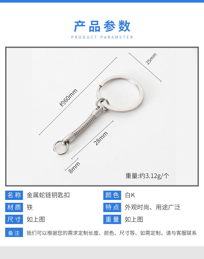 금속 25 플랫 키 링 매달려 뱀 체인 키 체인 펜던트 U 디스크 키 체인 diy 보석 하드웨어 소재 액세서리스토어 가기