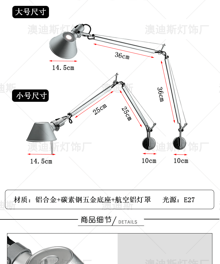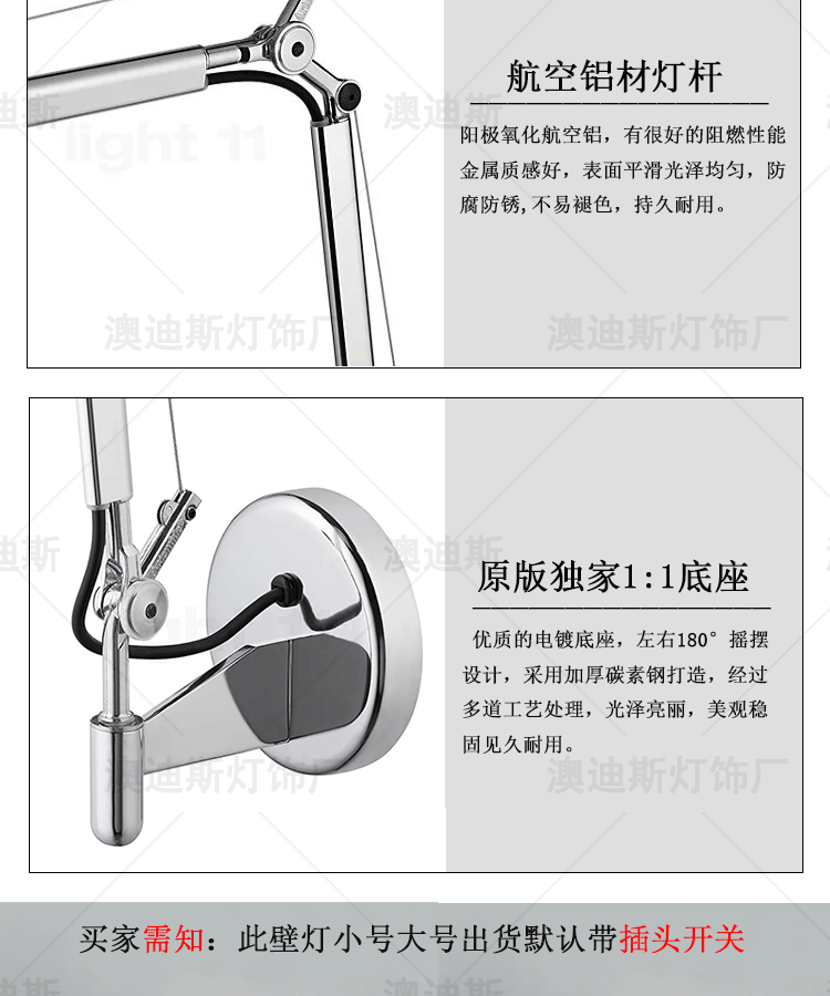 이탈리아 톨로메오 기계식 로커블 접이식 디자이너 서재 침실 침대 옆 독서용 중세 벽등스토어 가기