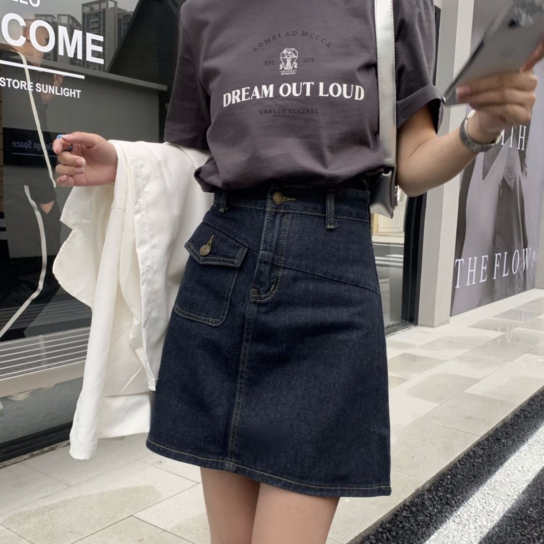 대형 A 라인 스커트 한국 스타일 스커트 여성의 트렌디 한 봄과 가을 2024 새로운 하이 허리 슬림 데님 스커트 여름스토어 가기
