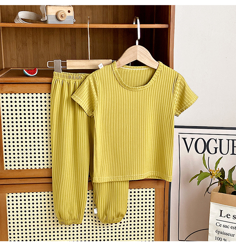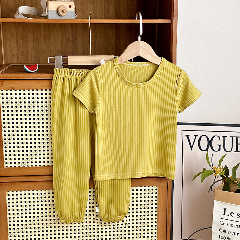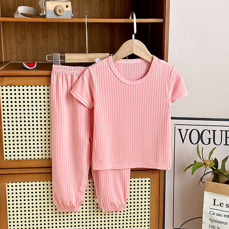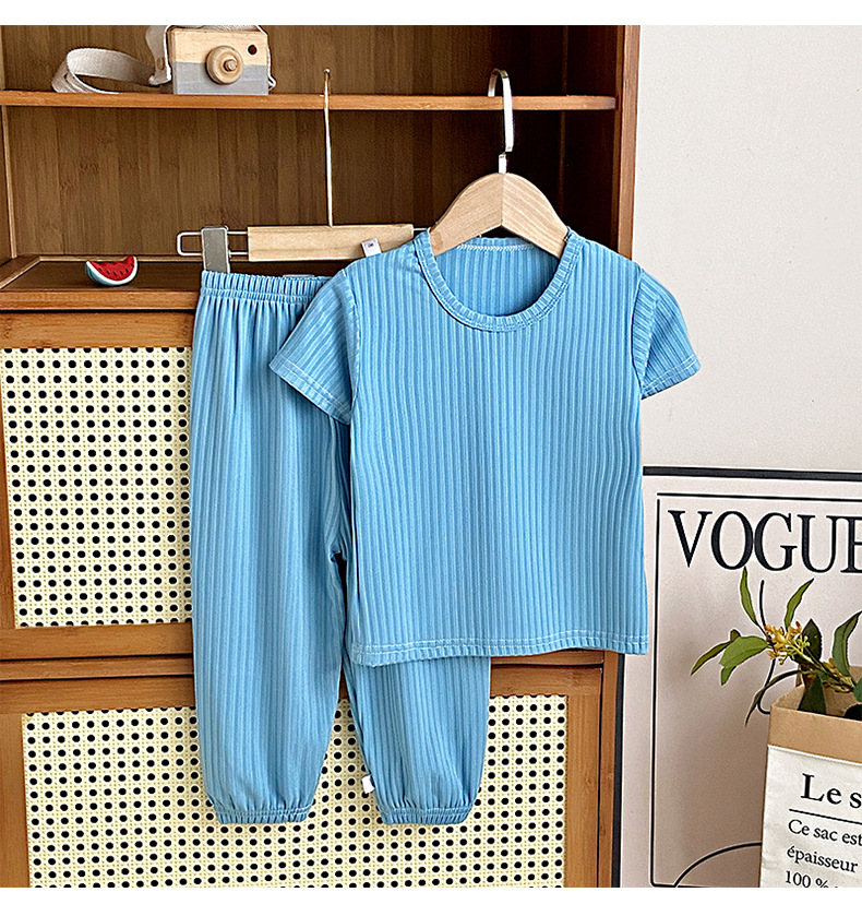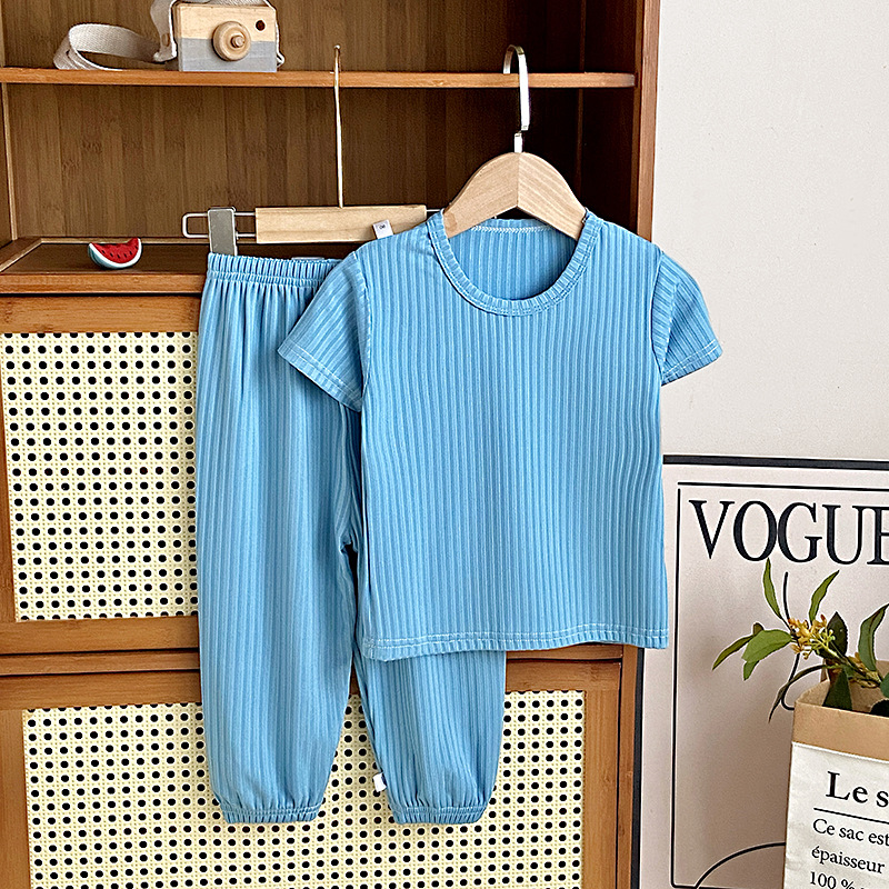 어린이 반팔 세트 소년 아이스 실크 빠른 건조 옷 소녀 티셔츠 바지 뭉치 다리 바지 홈 의류 아동복 도매스토어 가기