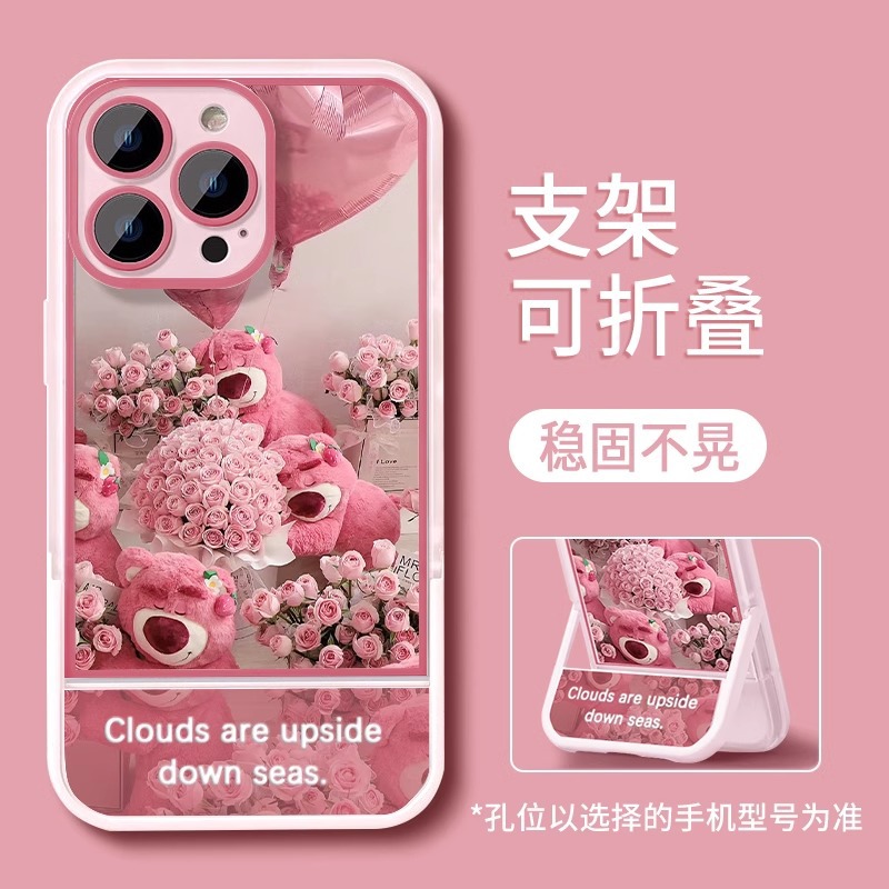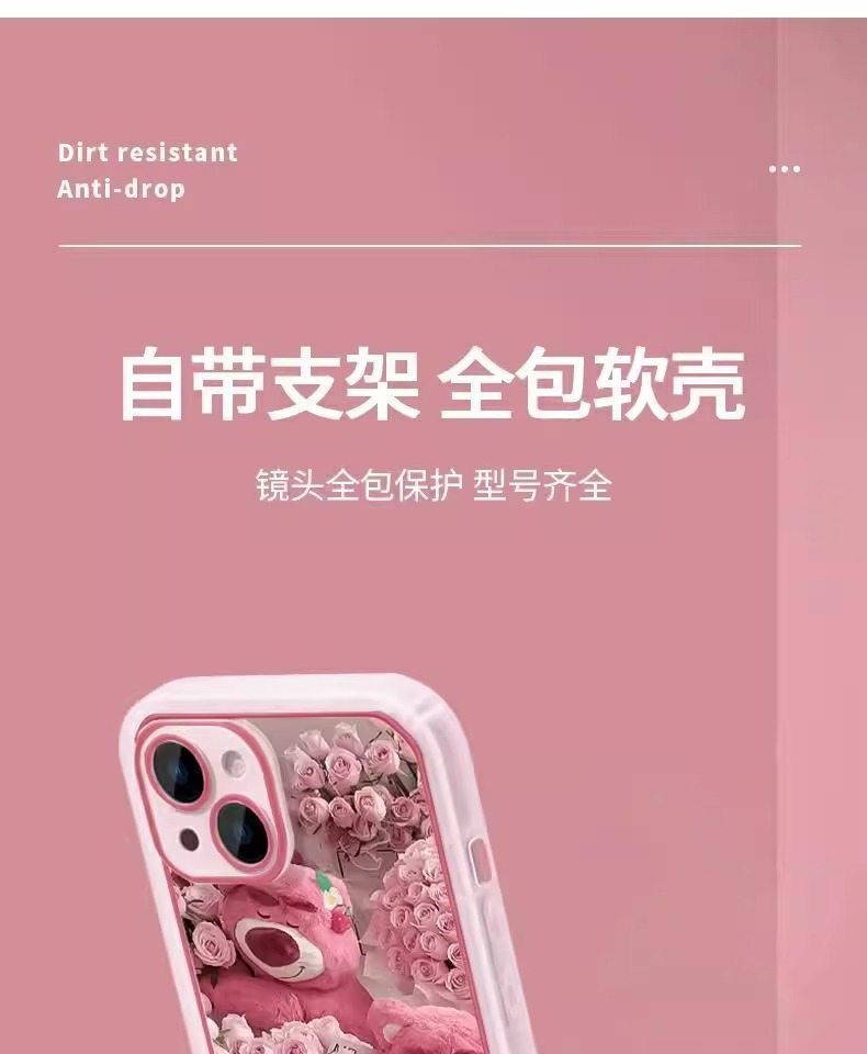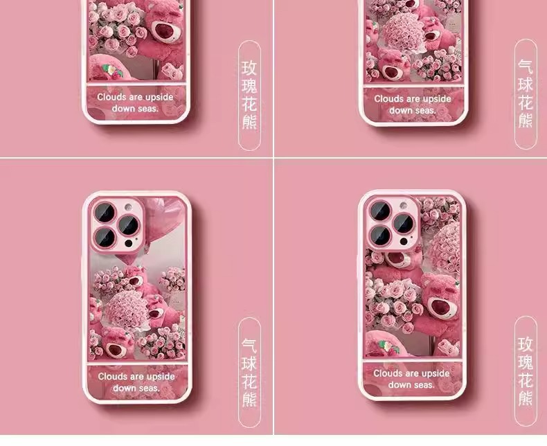 애플 15promax 휴대 전화 케이스 2024 새로운 iphone13 핑크 딸기 곰 12 풀 패키지 8plu스토어 가기