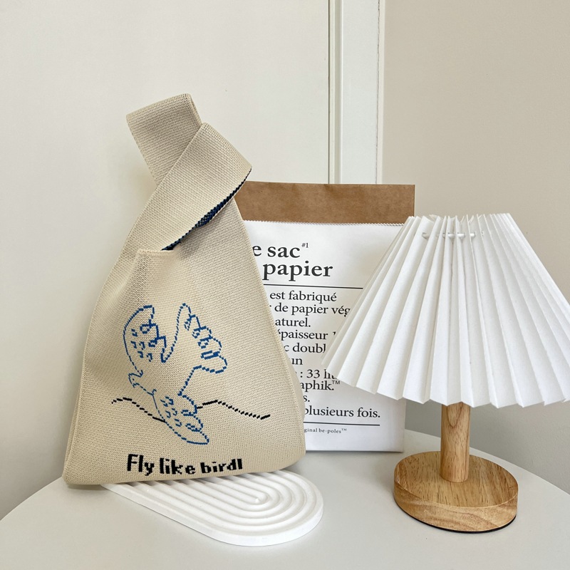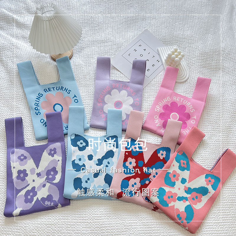 인터넷 연예인 핸드백 여성 니트 울 버킷 백 일본과 한국 스타일 올 매치 핸드 캐주얼 토트 백 런치 박스 백스토어 가기