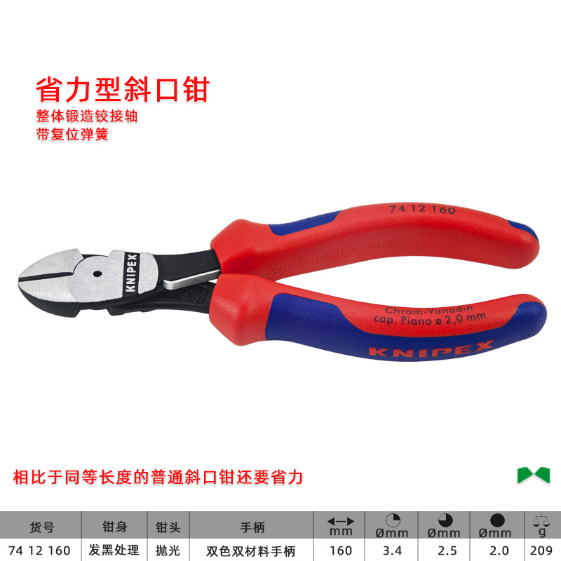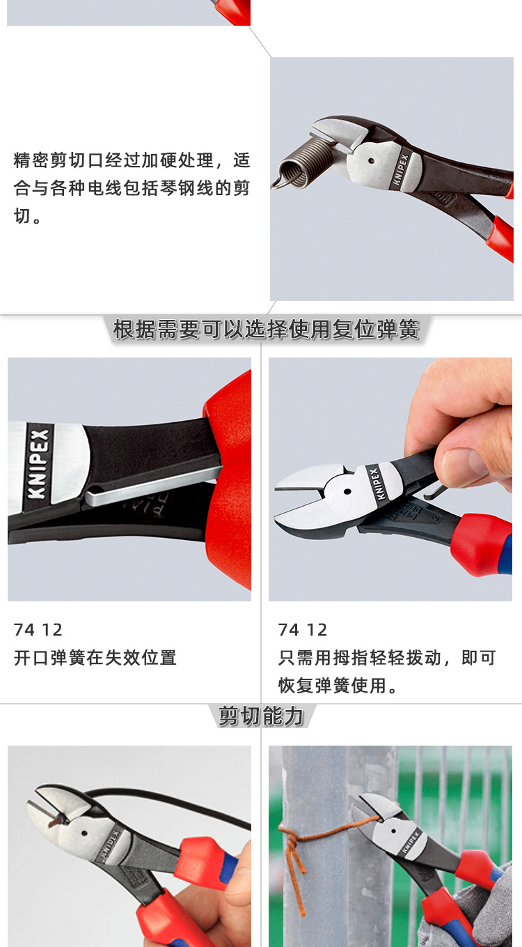 Kenypak KNIPEX 전기 와이어 커터 와이어 스프링 가위 펜치 노동 절약 대각선 펜치 대각선 펜치
