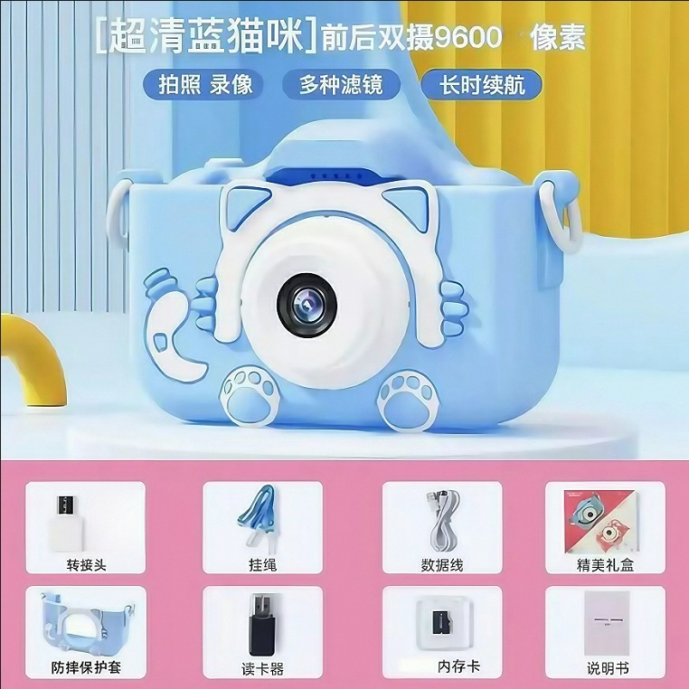 • (고양이 블루) HD 듀얼 카메라 9600W 64G 메모리 카드