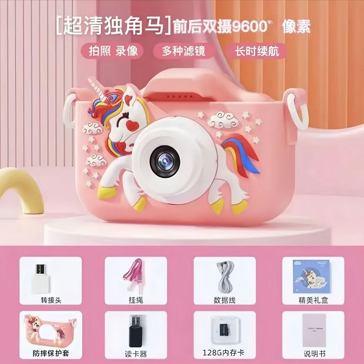 • (유니콘 핑크) HD 듀얼 카메라 9600W+128G 메모리 카드