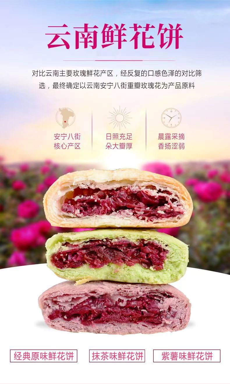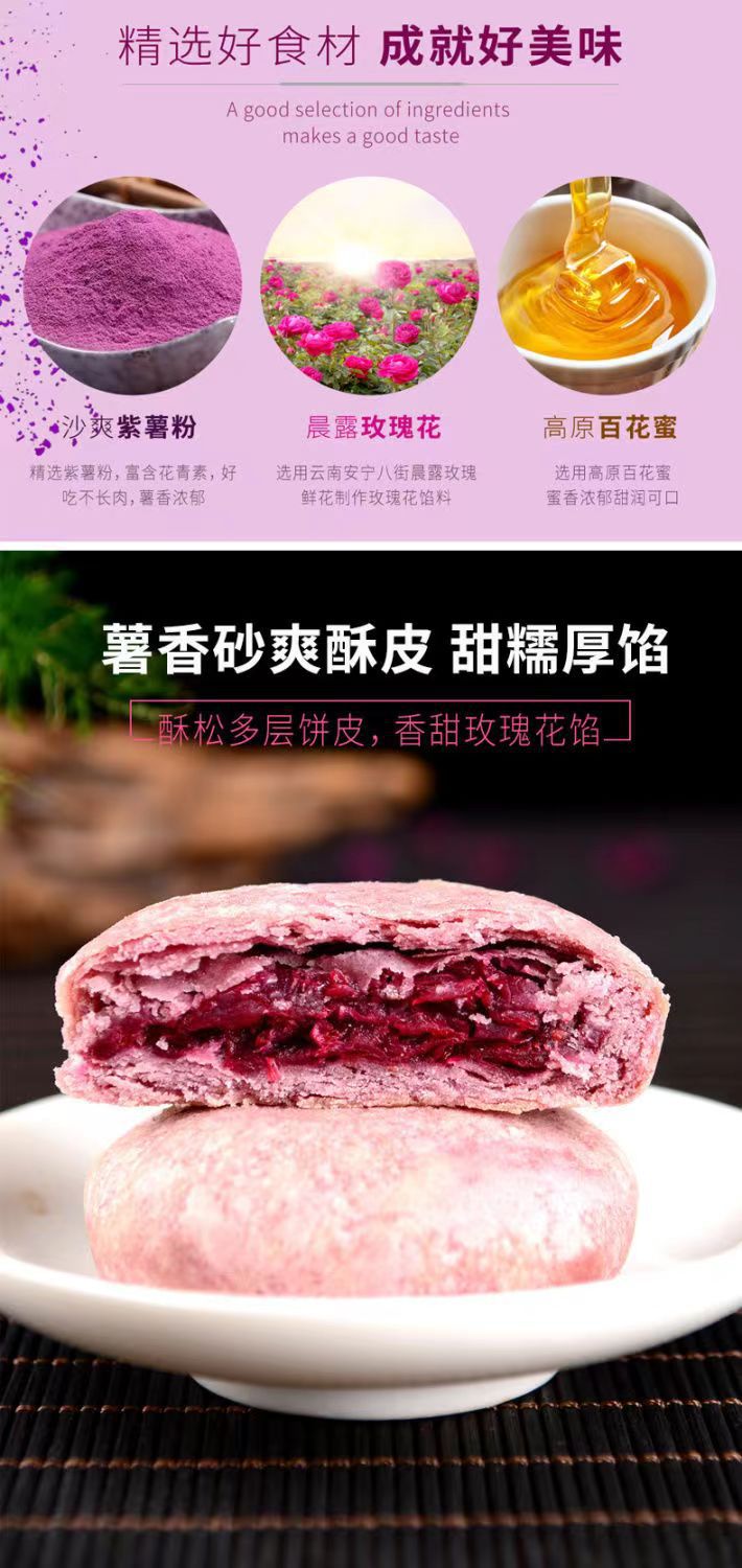 윈난 전문 꽃 케이크 보라색 감자 말차 장미 케이크 대량 케이크 스낵 도매 선물 상자 장미 꽃 케이크