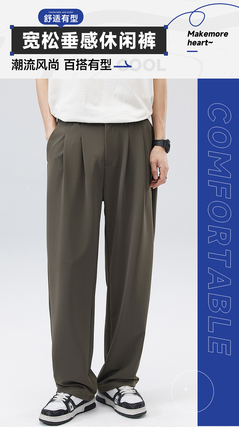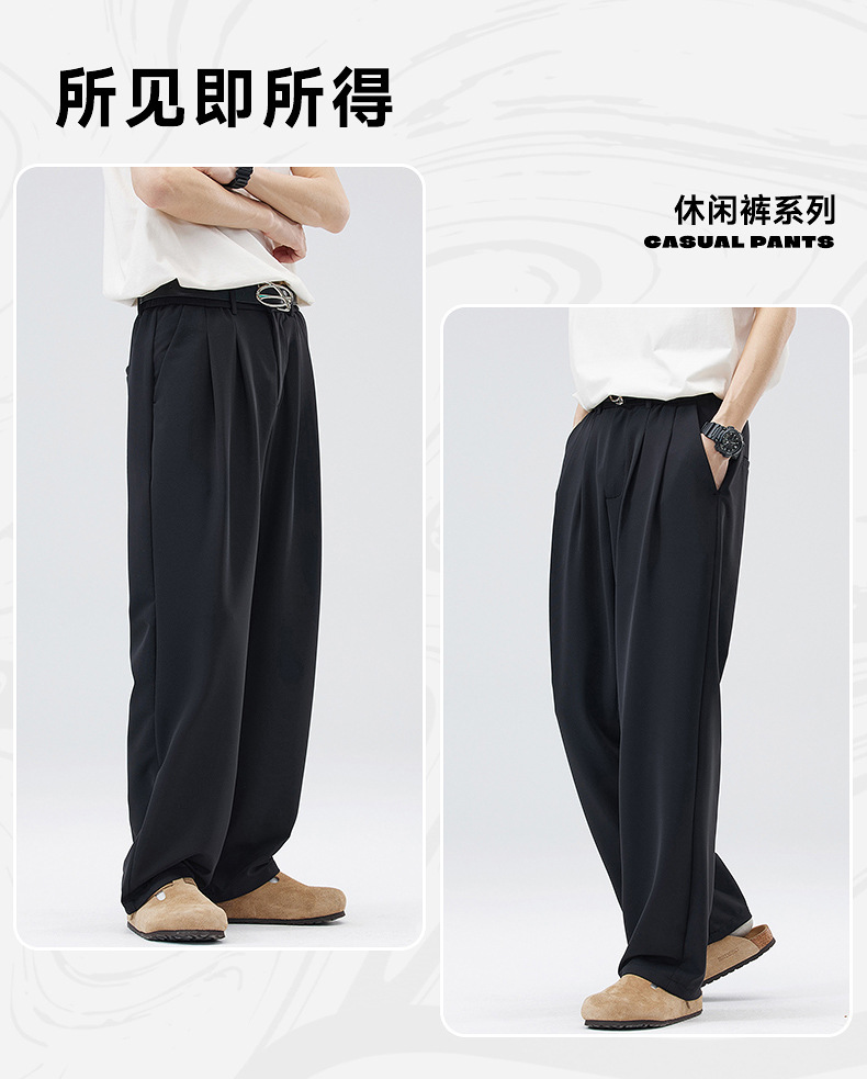 무추 남성복∣가을 겨울 신상 남성용 슬랙스 루즈핏 드레이프 스트레이트 레그 아메리칸 스타일 와이드 레그 출퇴근용 정장 캐주얼 팬츠