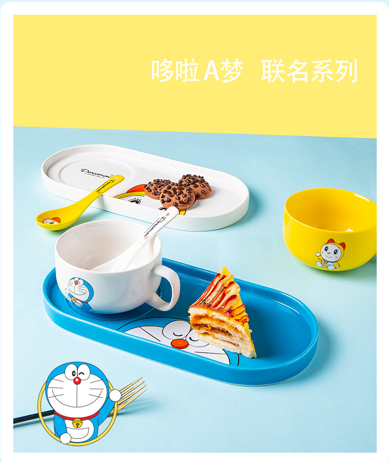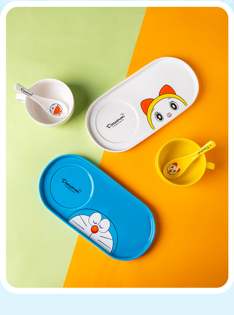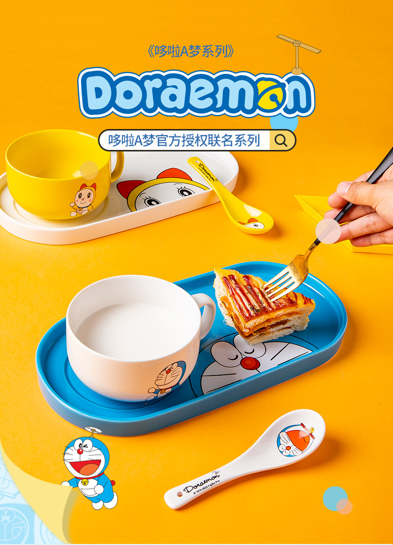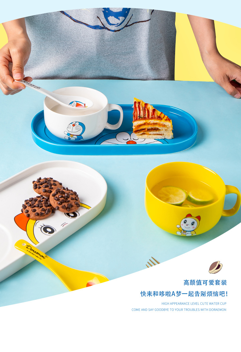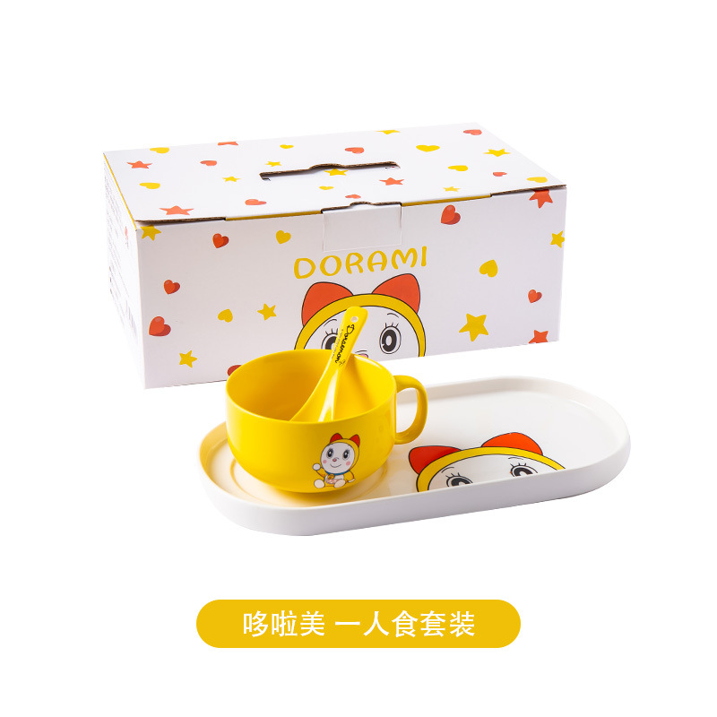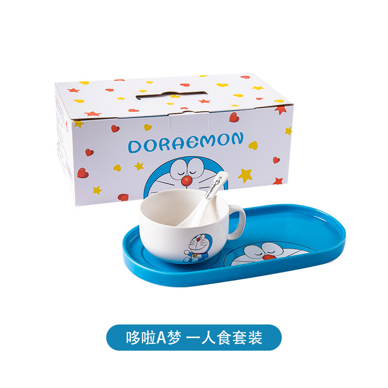 한 사람 음식 세트 어린이 식기 도라에몽 도라에몽 컵 접시 숟가락 조합 만화 귀여운 세라믹스토어 가기