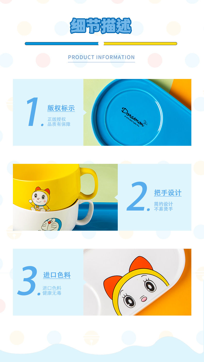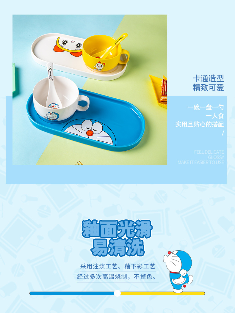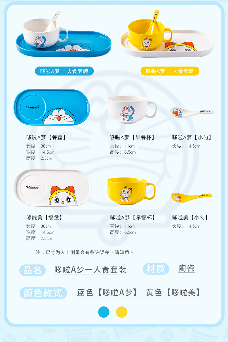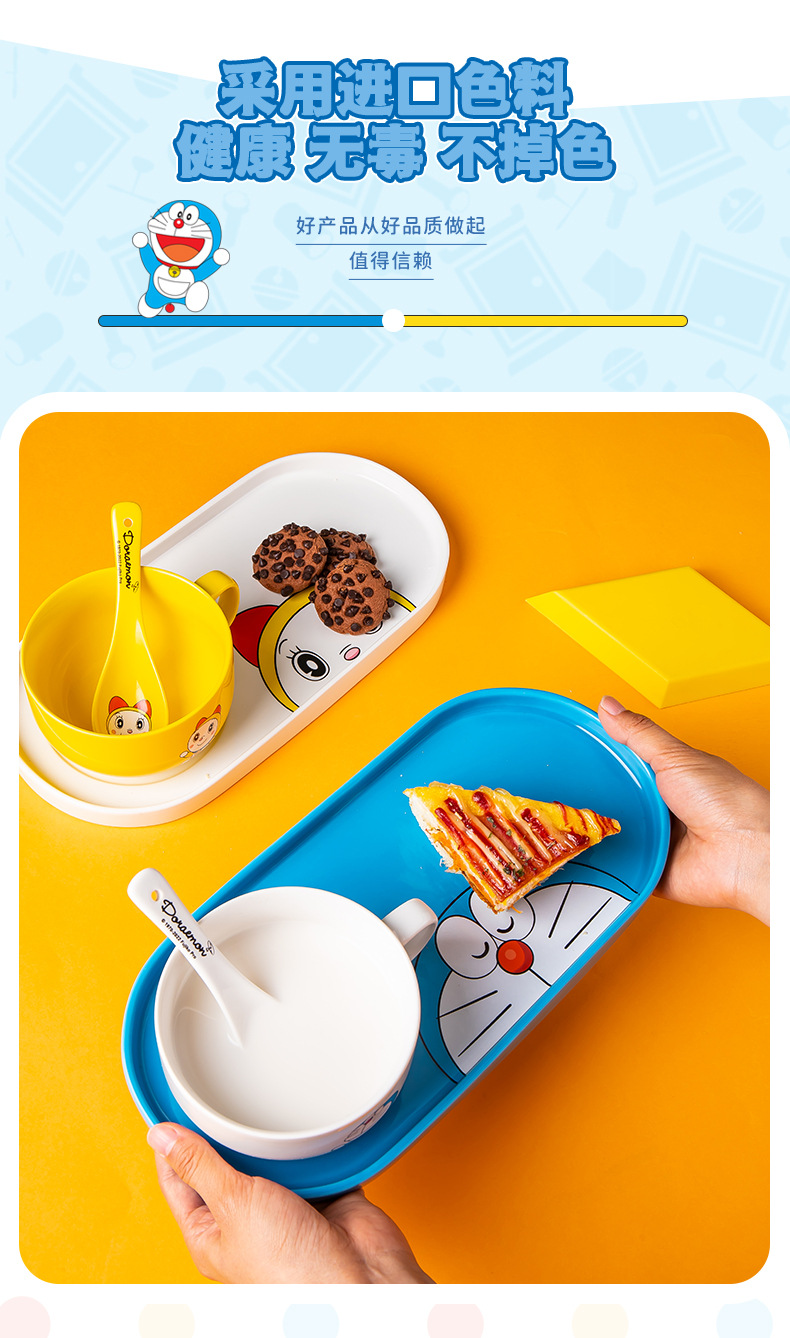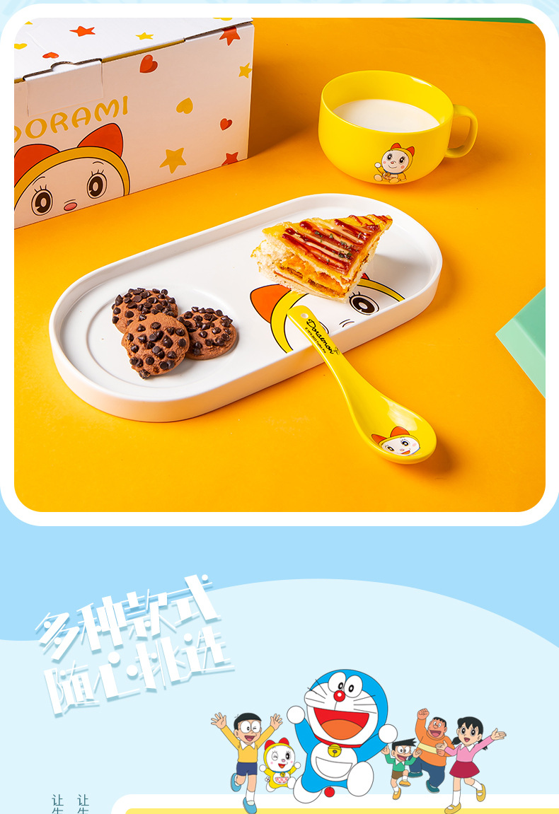 한 사람 음식 세트 어린이 식기 도라에몽 도라에몽 컵 접시 숟가락 조합 만화 귀여운 세라믹스토어 가기
