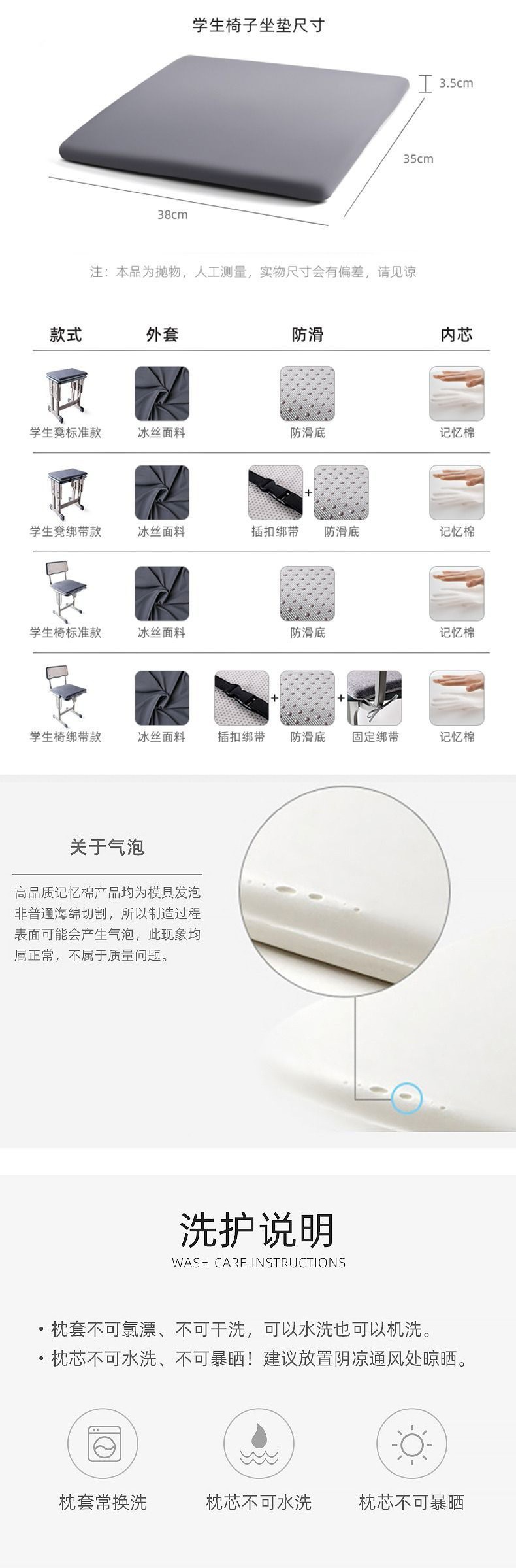직사각형 학생 의자 쿠션 교실 긴 방귀 의자 고등학교 여름 얼음 실크 메모리 면 멋진 의자 공장 도매스토어 가기
