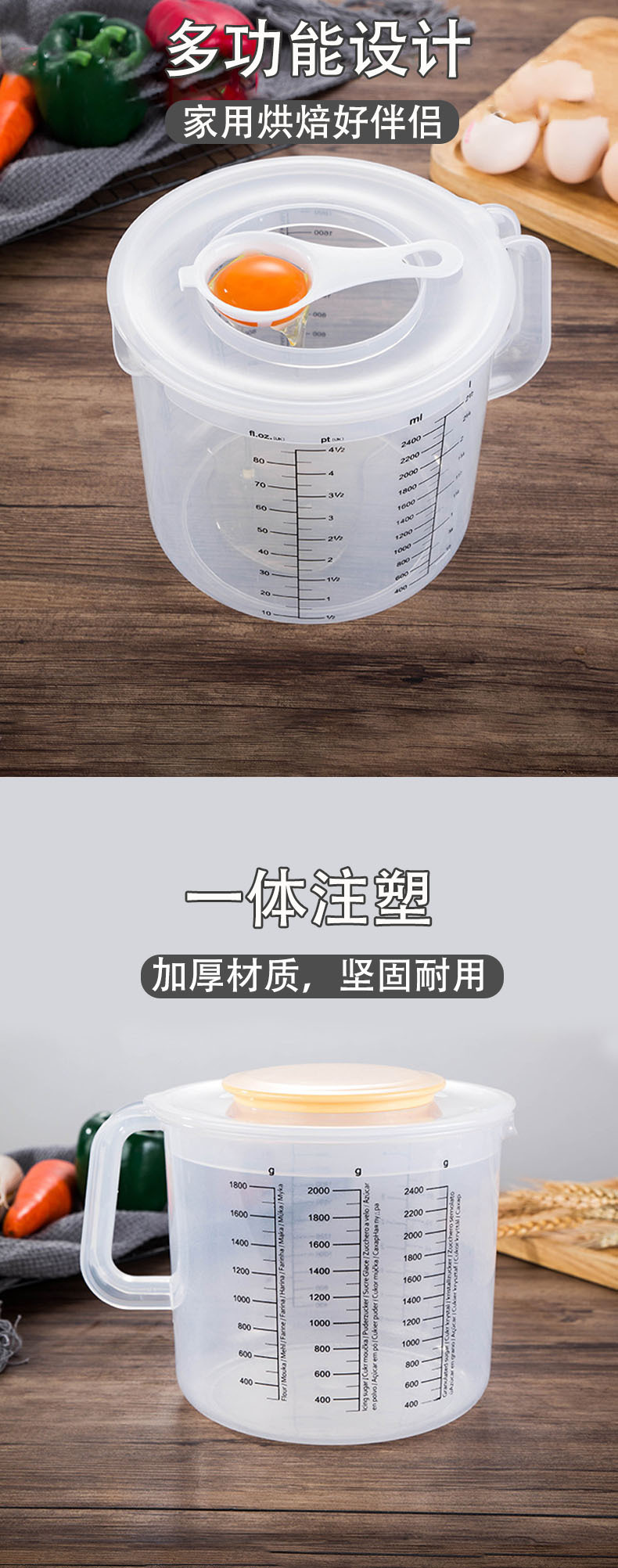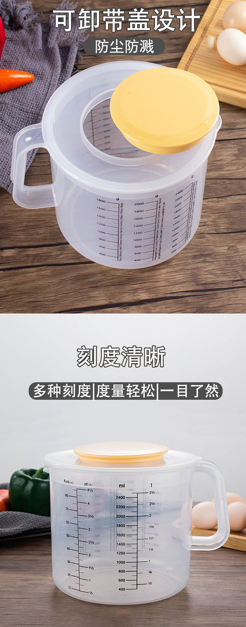 플라스틱 베이킹 측정 컵 2.5L 뚜껑 스플래시 방지 측정 컵 베이킹 측정 컵 가구 졸업 헤어 컵스토어 가기