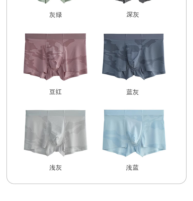 여름 남성 속옷 통기성 가볍고 무봉제 위장 무늬 아이스 실크 남성 사각팬티 편안한 사각반바지 아이스감스토어 가기