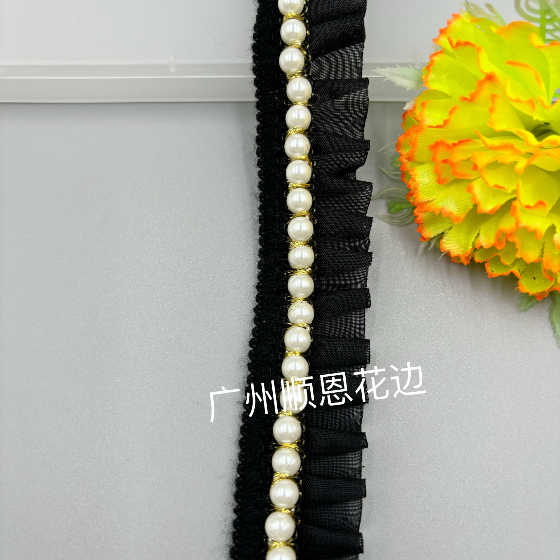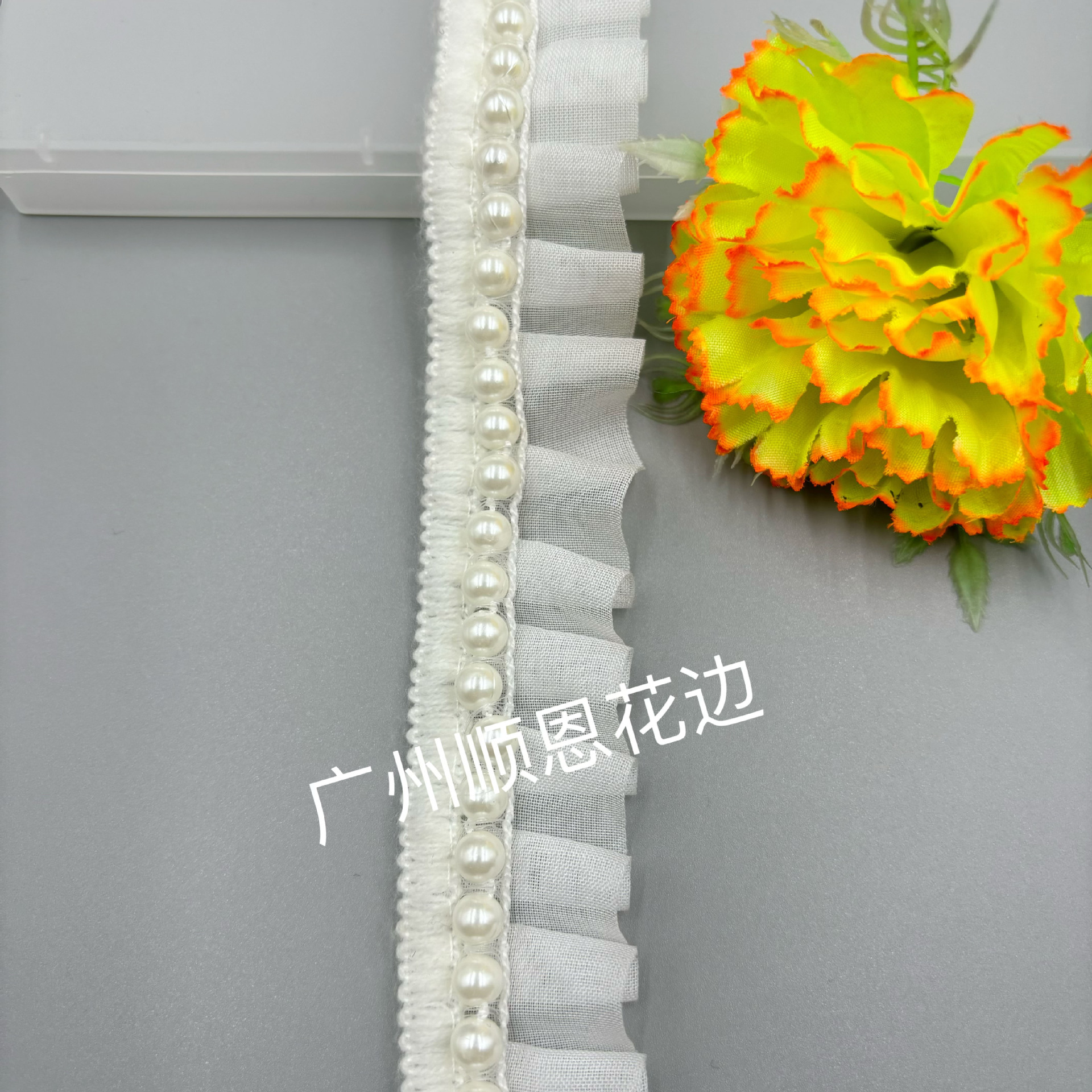 品名:单边珠车雪纺压折花边 规格:3cm左右