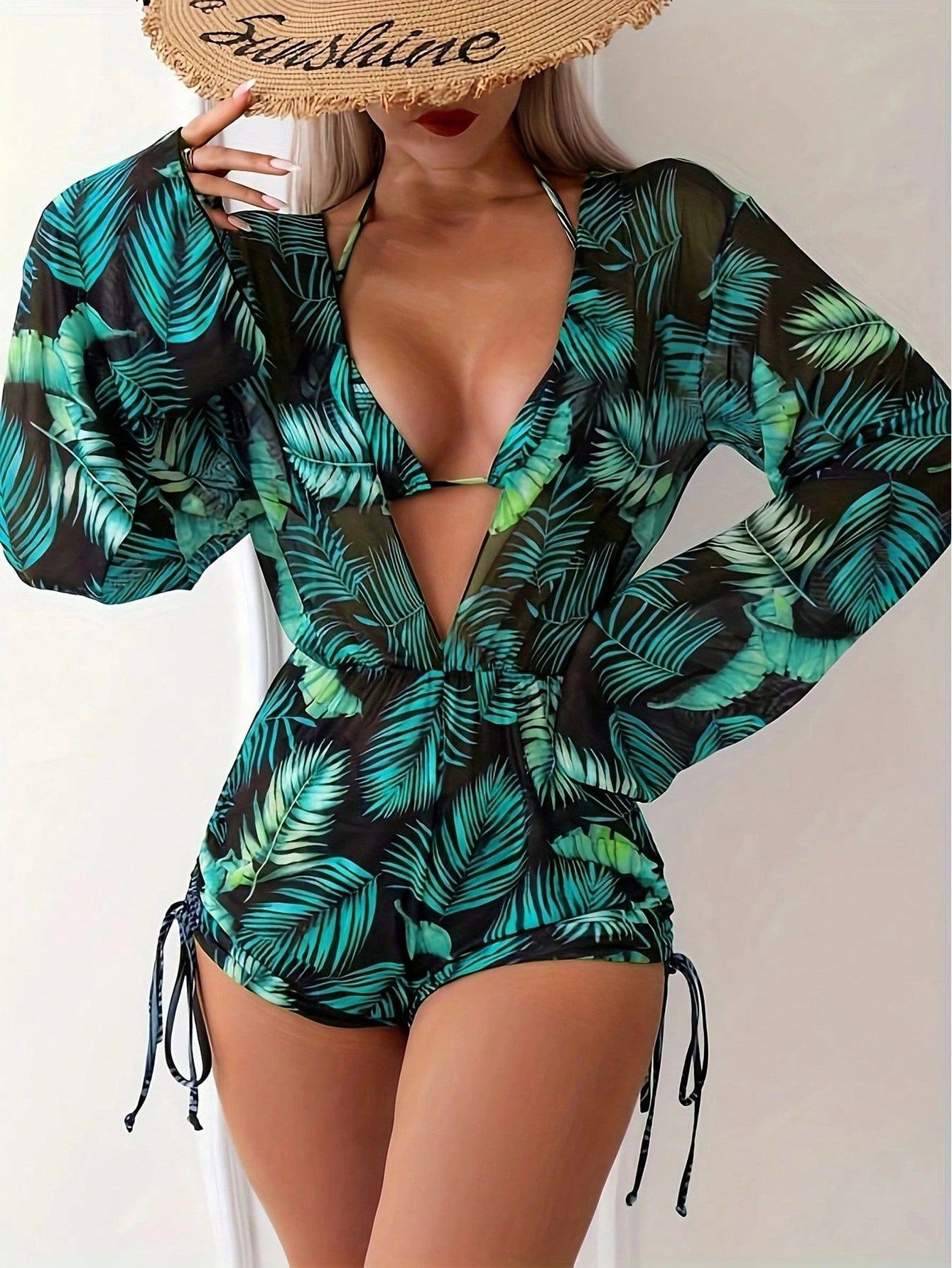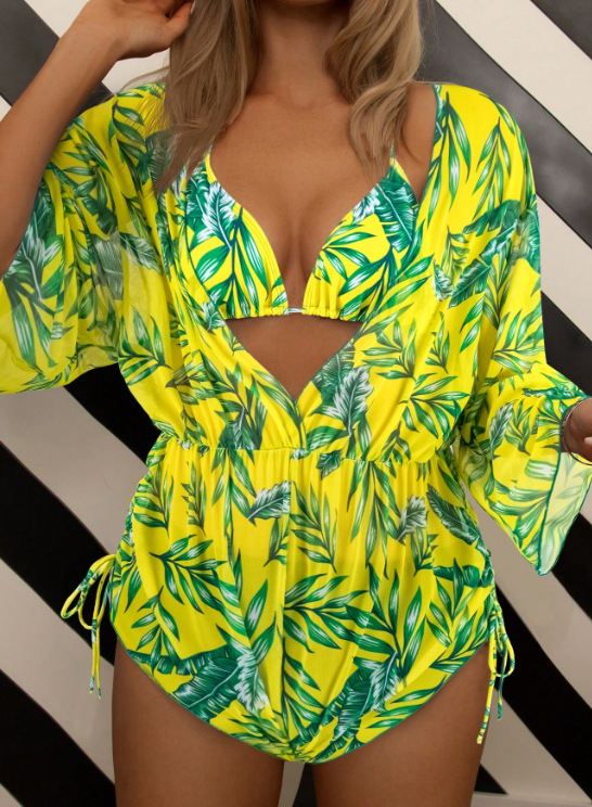 새로운 국경 유럽 및 미국 비키니 3 피스 수영복 여성 아마존 느슨한 섹시한 메쉬 분할 수영복 여성스토어 가기