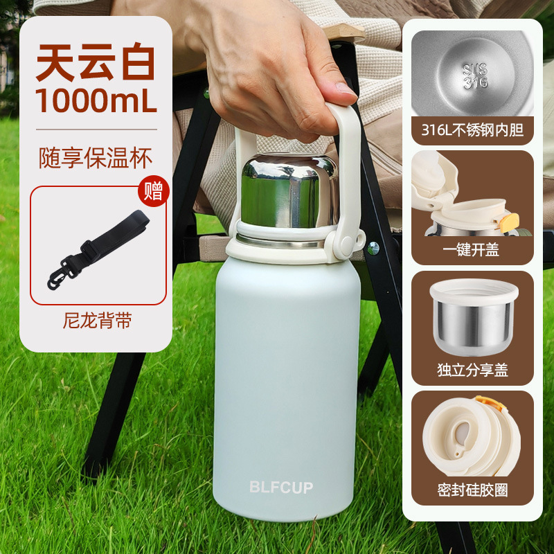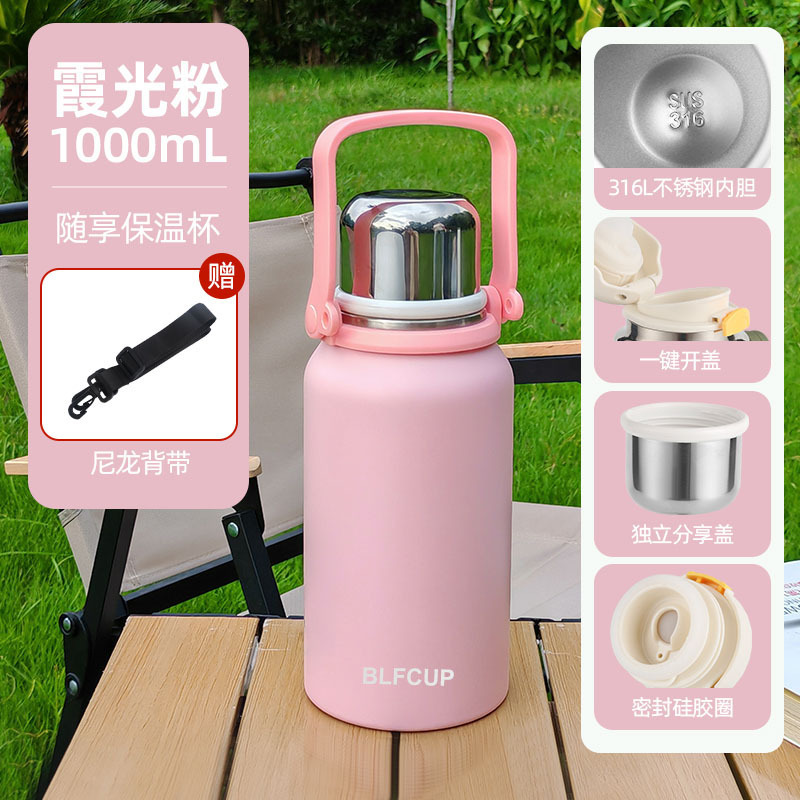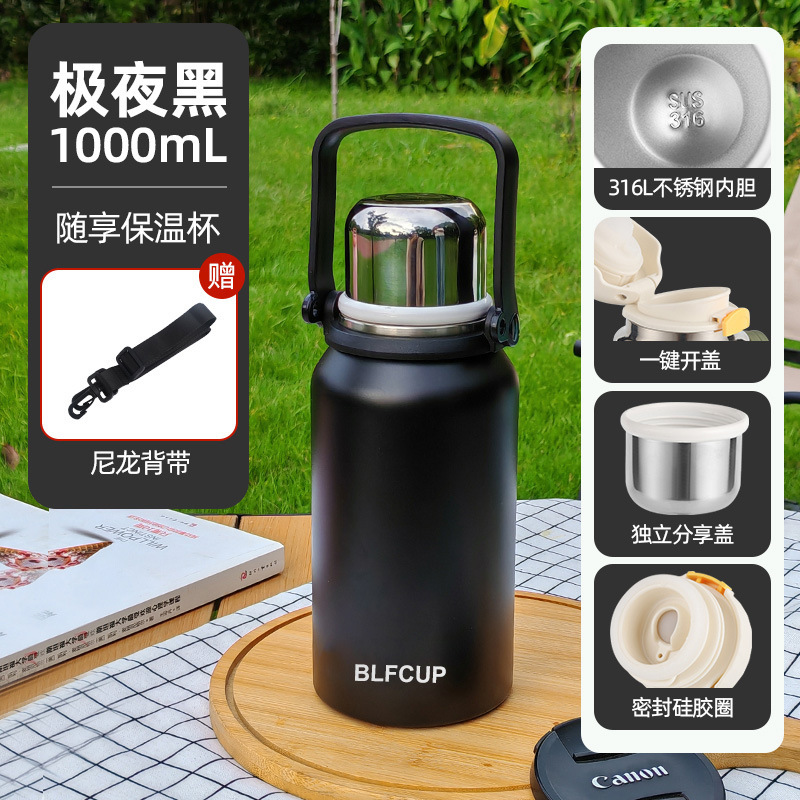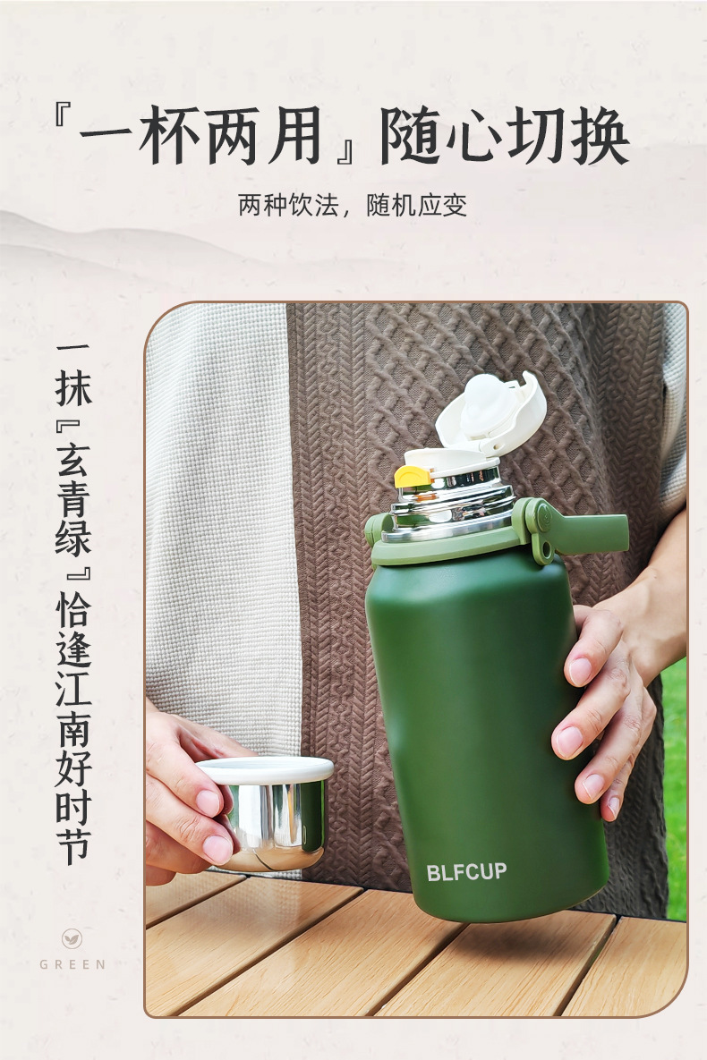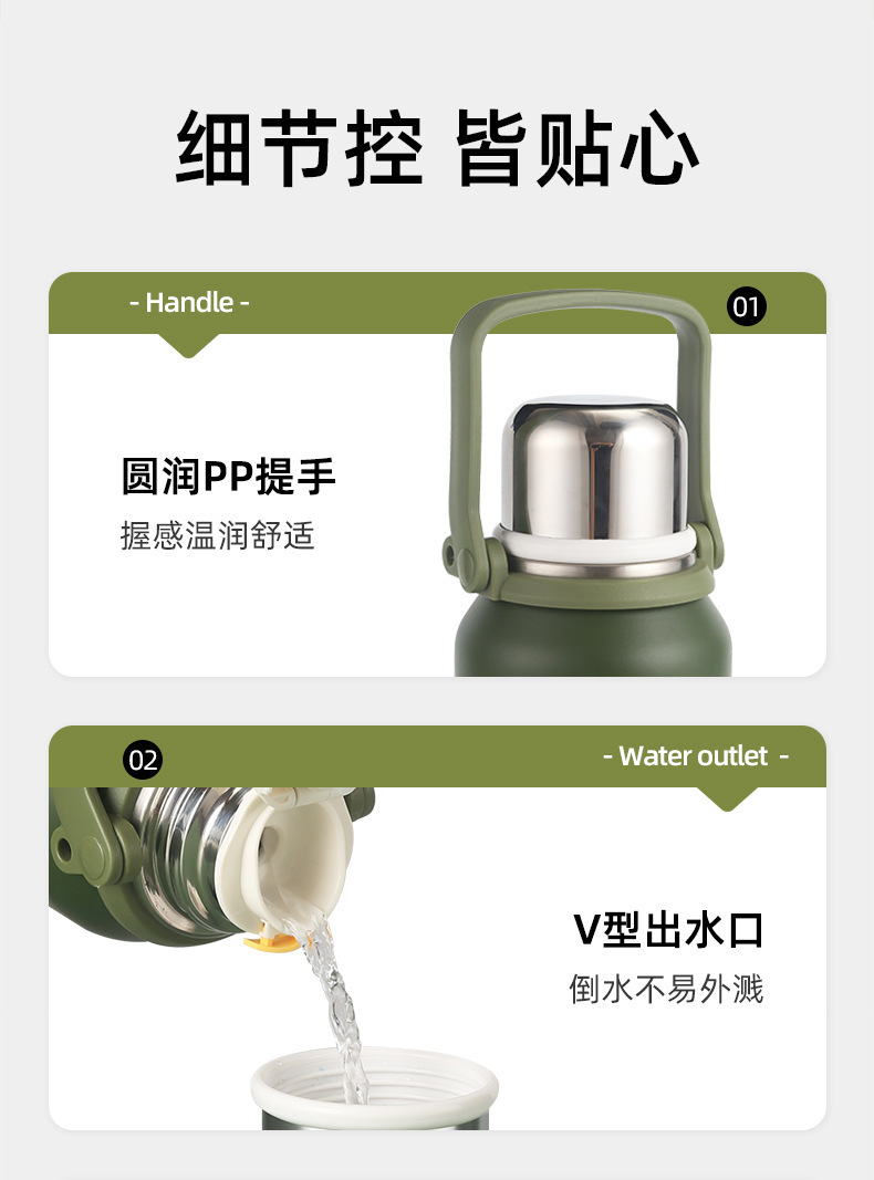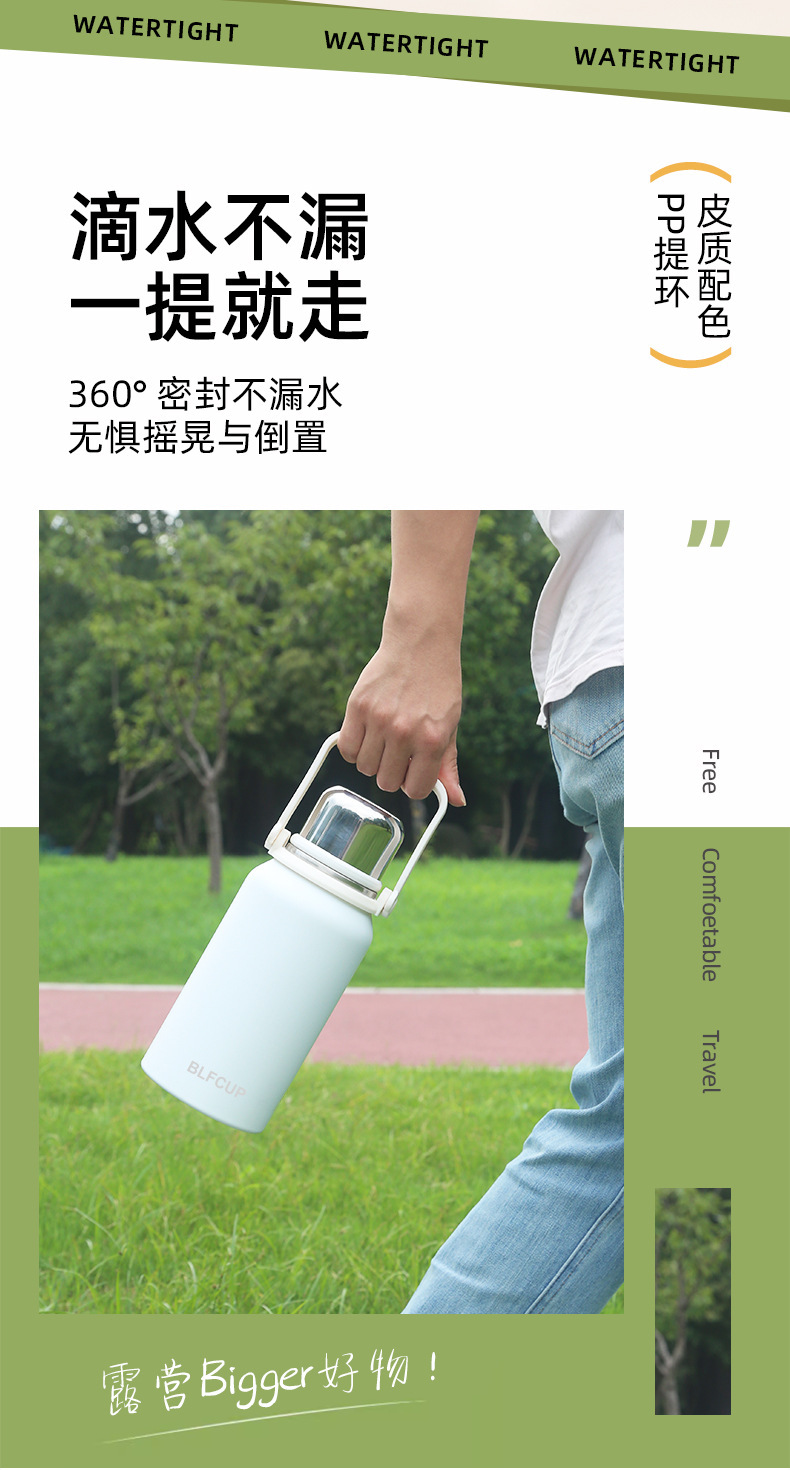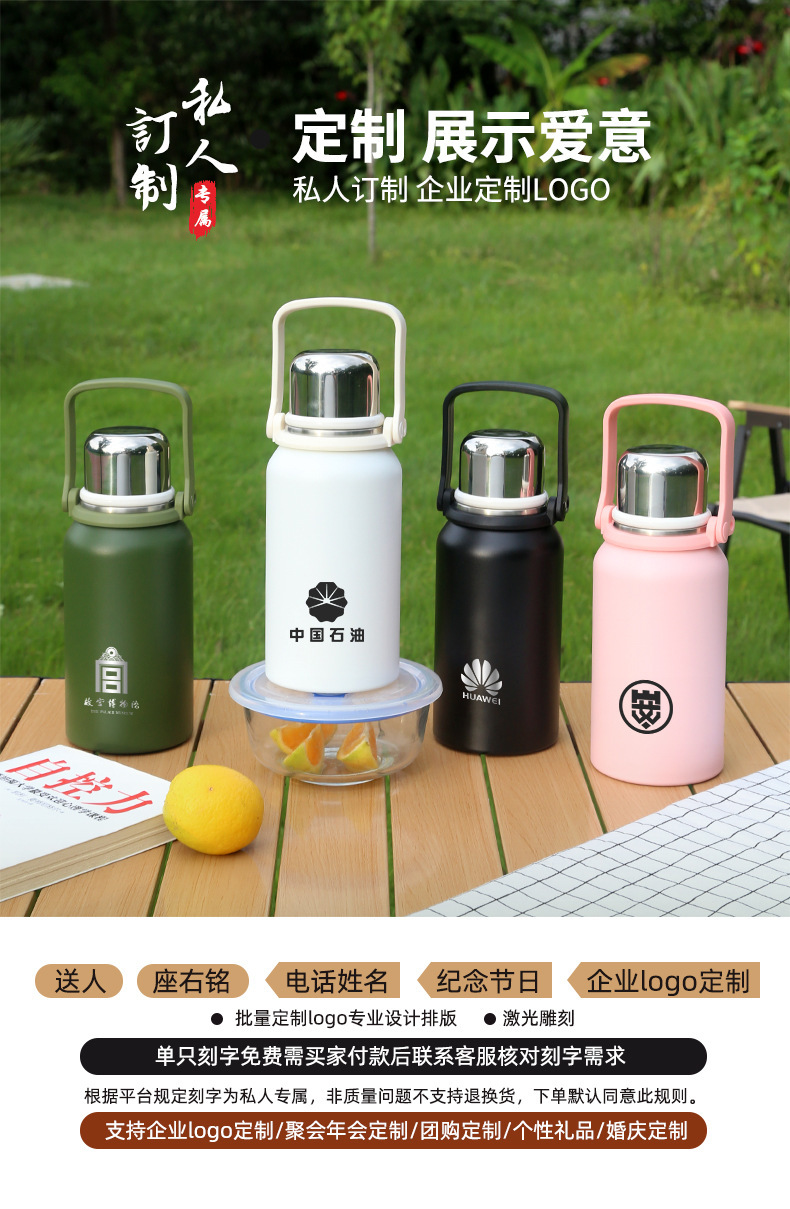 대용량 고급스러운 스테인리스 보온보냉컵, 휴대용 야외 캠핑 등산용 손잡이 물병 (맞춤 제작 가능)