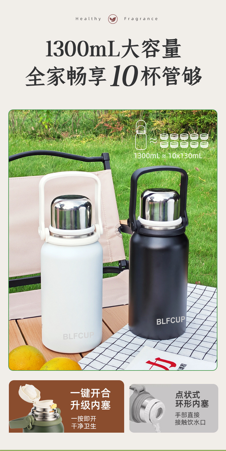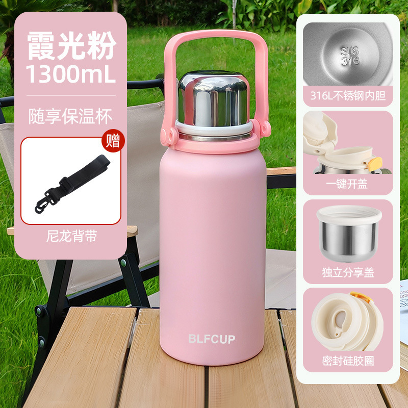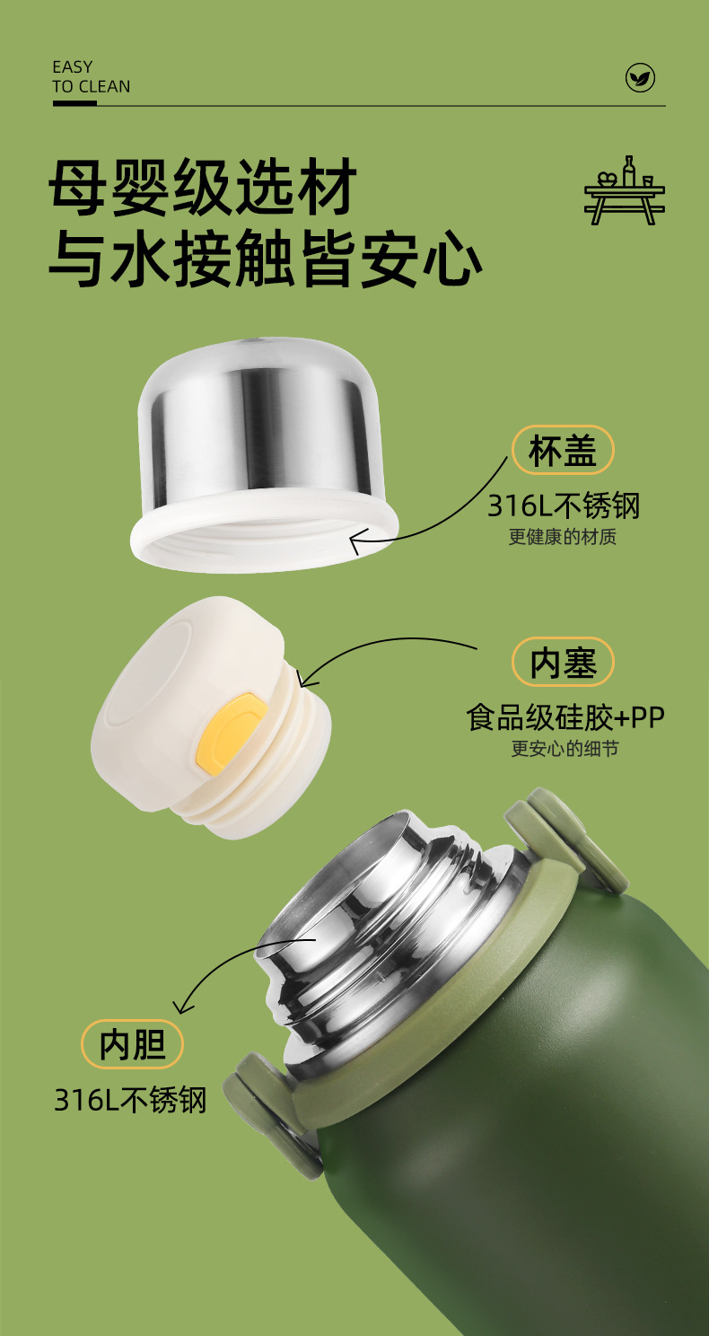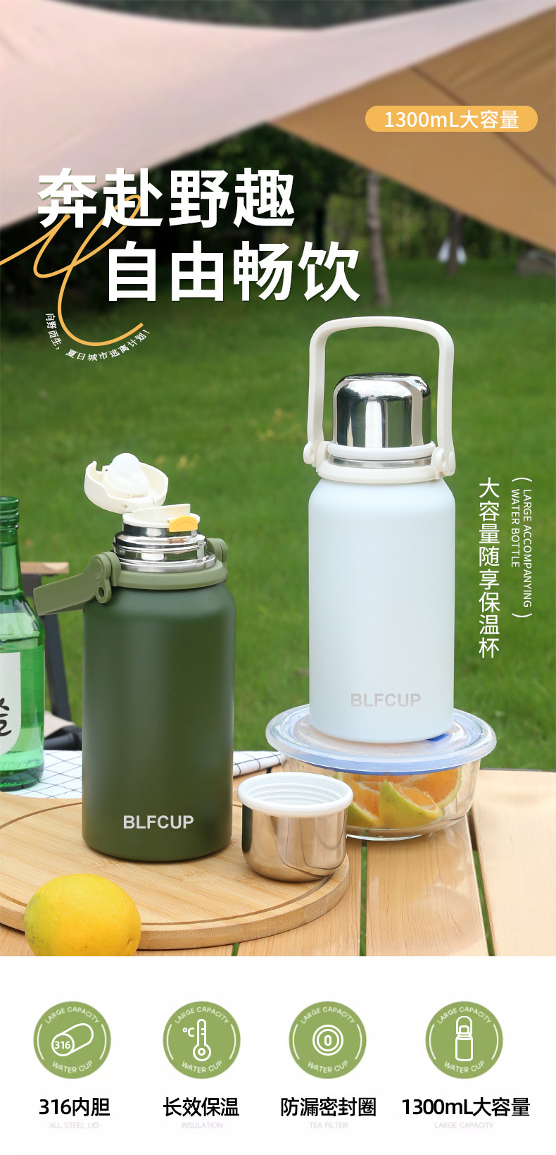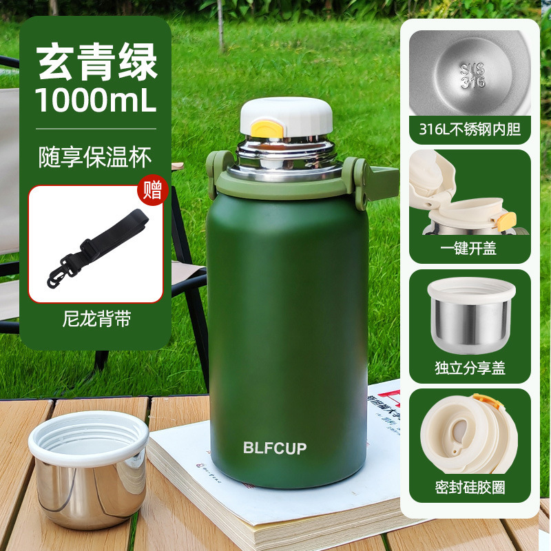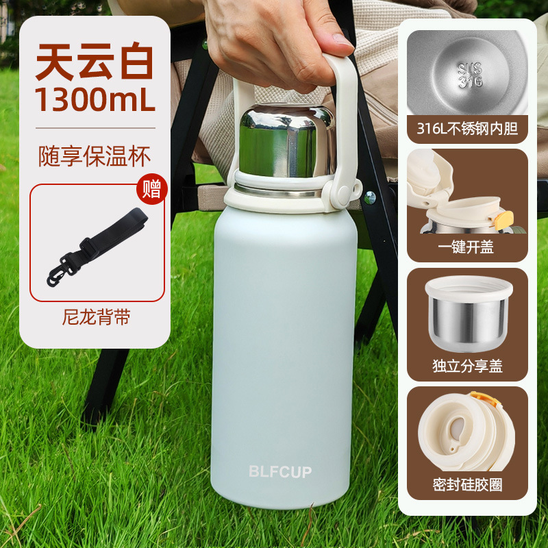 대용량 고급스러운 스테인리스 보온보냉컵, 휴대용 야외 캠핑 등산용 손잡이 물병 (맞춤 제작 가능)