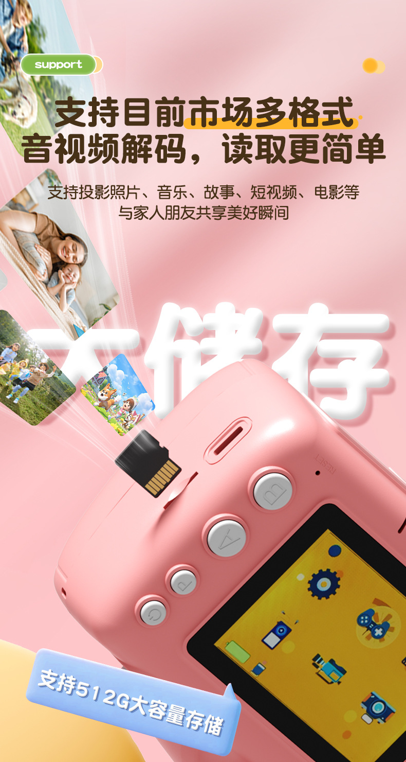 • 64G 카드가 포함된 핑크 HD 프로젝션 카메라 플래그십 버전