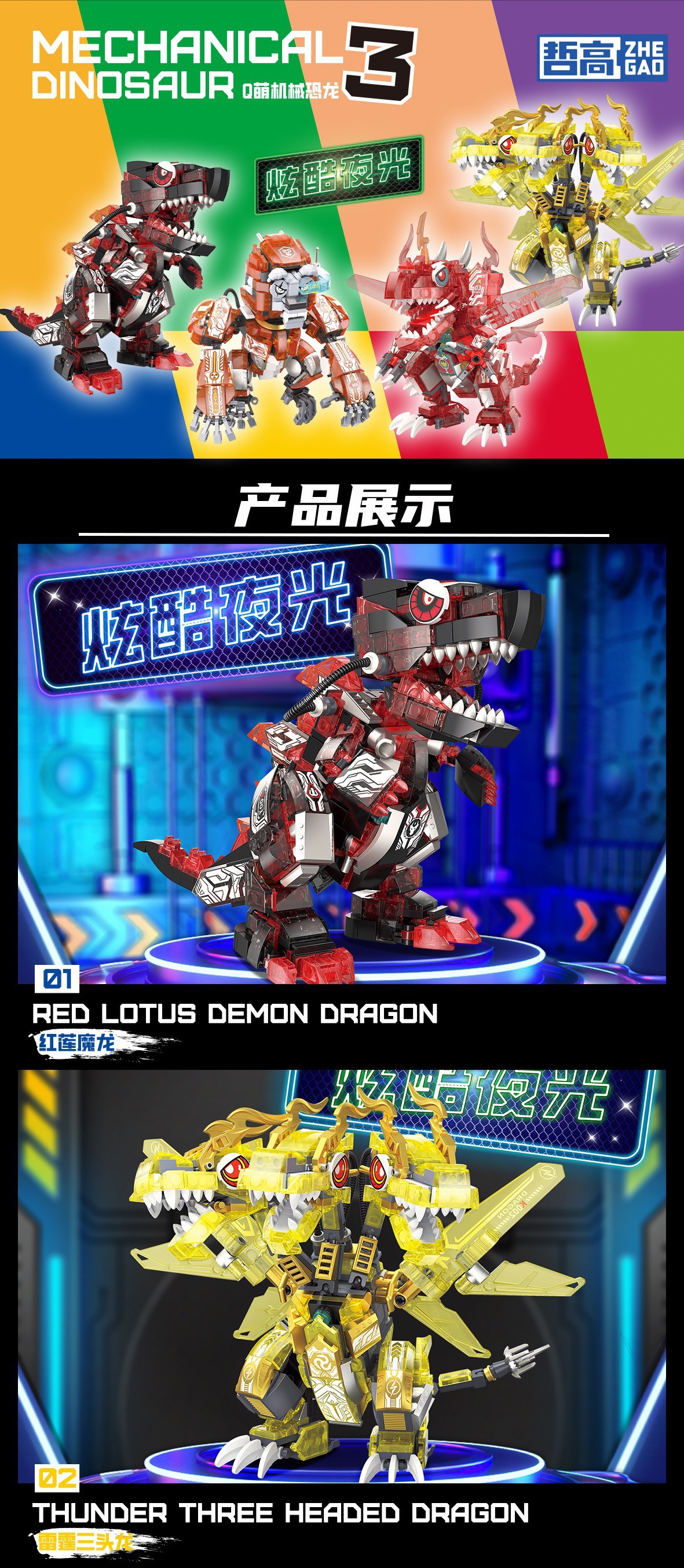레고 빛나는 공룡 티라노사우루스 렉스 메카 모델 빌딩 블록 어린이 교육 조립 장난감 소년 선물