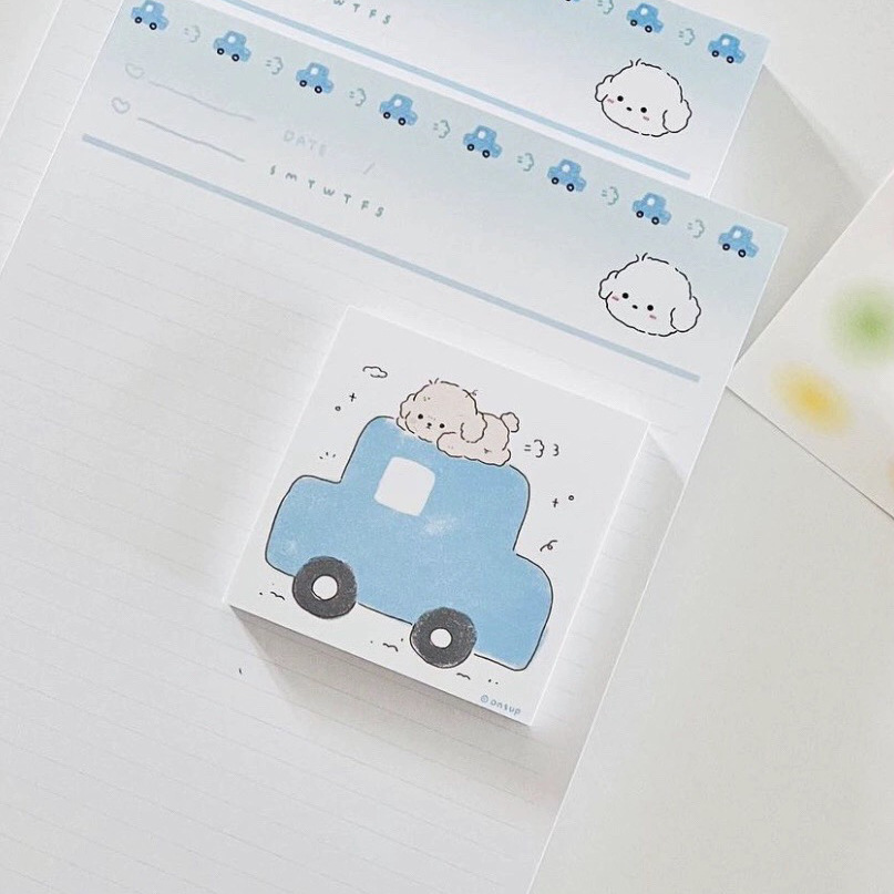 Ins 한국어 버전의 동기식 2024 새로운 방귀 개 운전 자동차 간단한 메모 패드 끈적 끈적한 메모 용지스토어 가기
