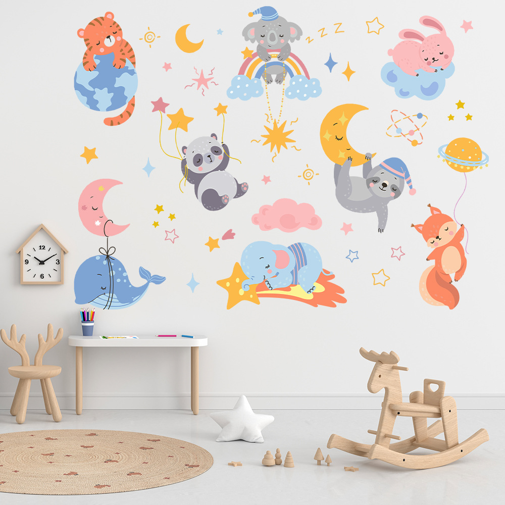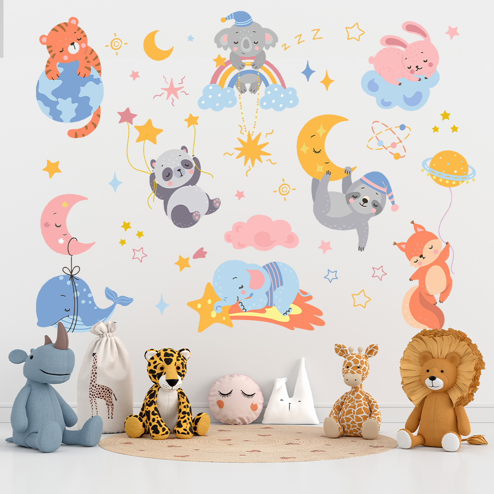 Yiyao DD3082 따뜻한 동물 꿈 향수 스티커 벽 스티커 홈 거실 장식 뷰티 셀프 접착 이동식 스티커