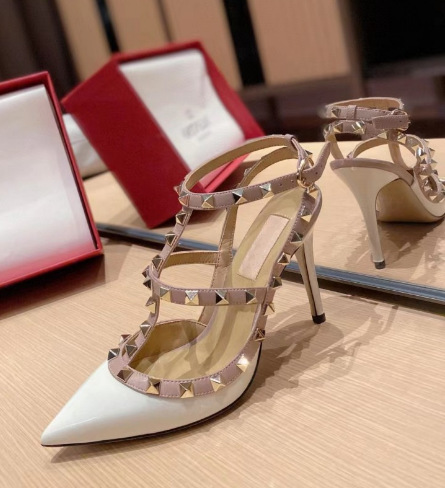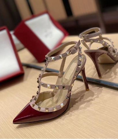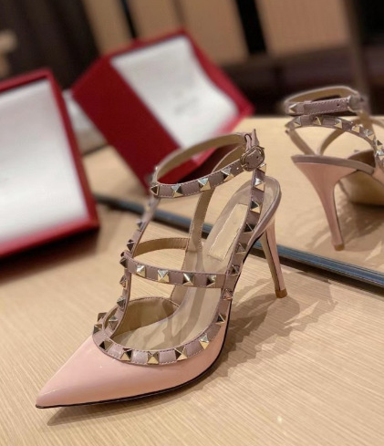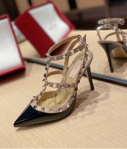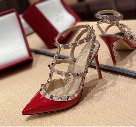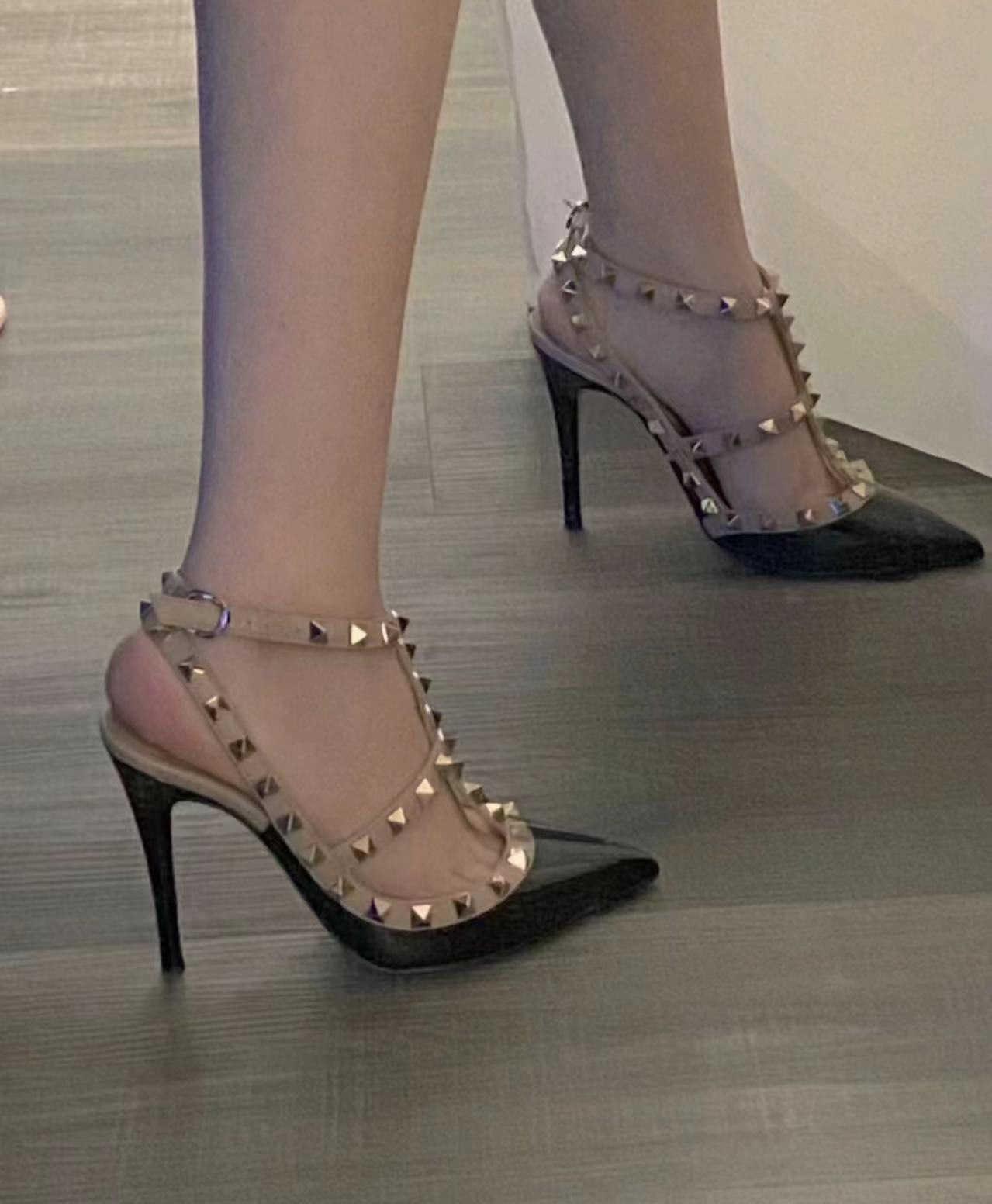 하이 버전 v 홈 뉴 리벳 샌들 하이힐 2 링 뾰족한 발가락 하이힐 섹시한 가죽 샌들 여성스토어 가기