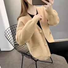 한국식 솔리드 컬러 내부 웨이슬 카디건 재킷 가을과 겨울 V-넥 싱글 브레스트 올 매치 소프트 세트 니트 조끼스토어 가기