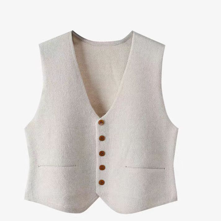 한국식 솔리드 컬러 내부 웨이슬 카디건 재킷 가을과 겨울 V-넥 싱글 브레스트 올 매치 소프트 세트 니트 조끼