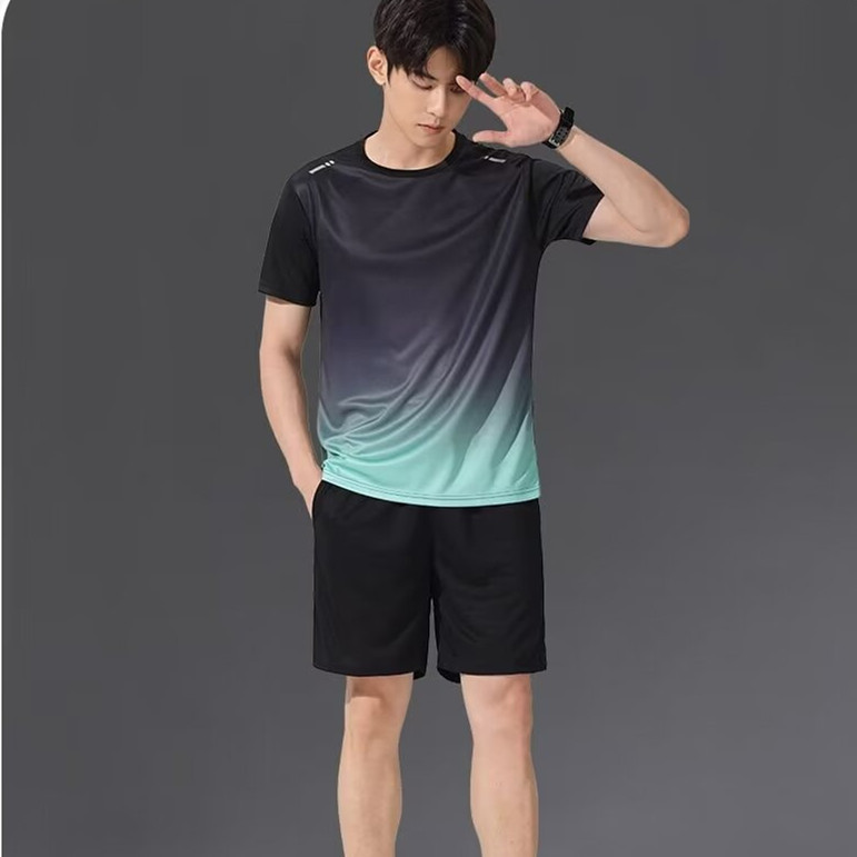 운동복 세트 남자 아이스 실크 달리기 빠른 건조 옷 티셔츠 반팔 여름 피트니스 깃털 농구 반바지 훈련 옷스토어 가기
