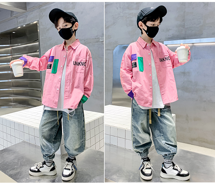 소년의 봄 컬러 블록 면화 코트 2024 새로운 도착 큰 어린이 스타일 캐주얼 재킷 탑 봄과 가을스토어 가기