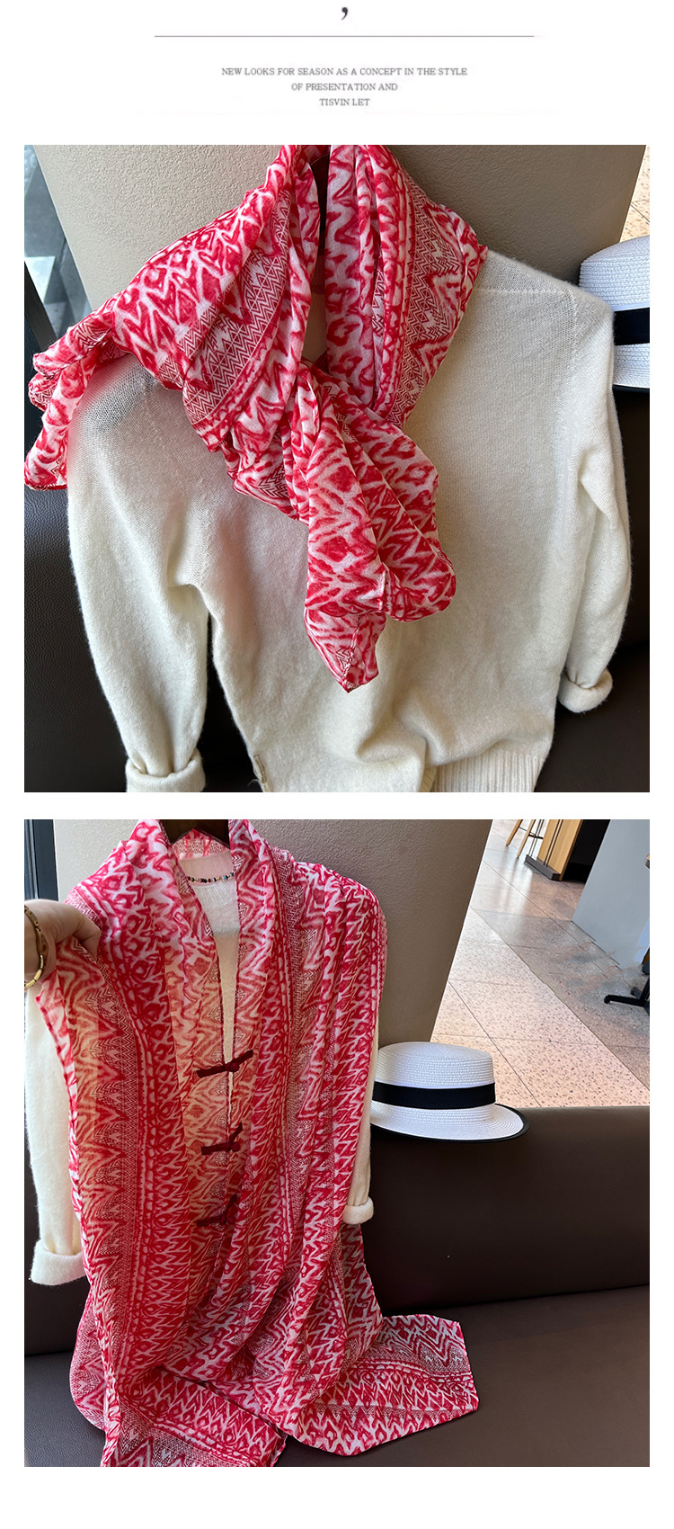새로운 중국식 버클 레드 스카프 여자 여름 올 매치 스카프 여행 스카프 선 스크린 선쉐드 판초 목도리 스카프