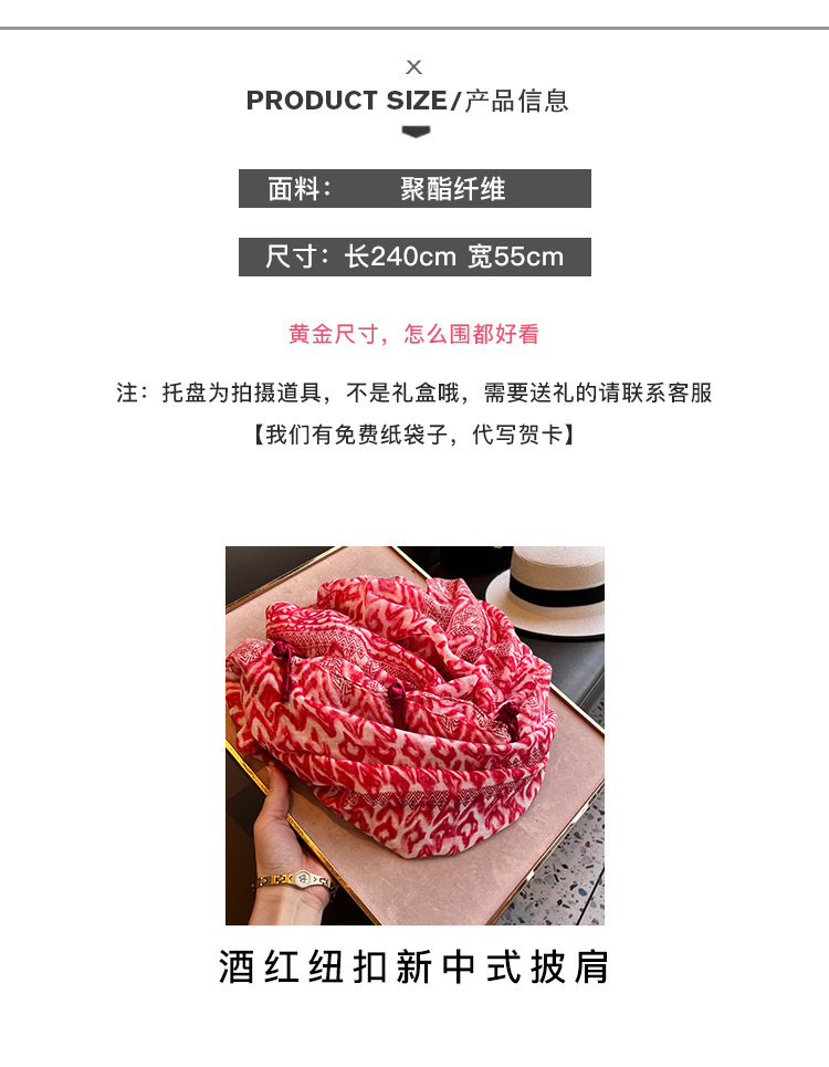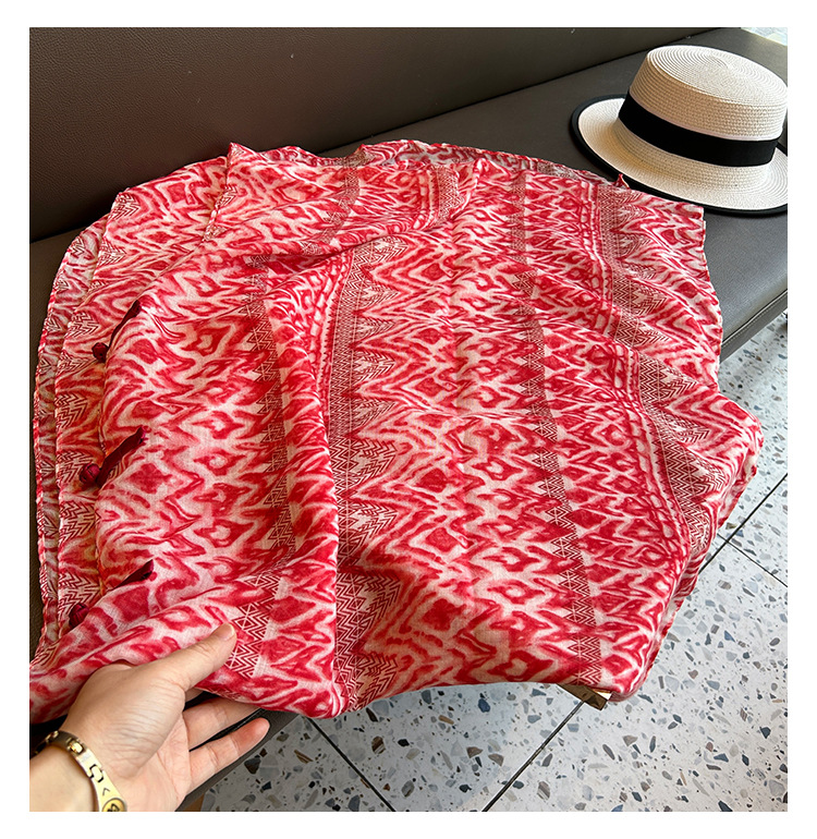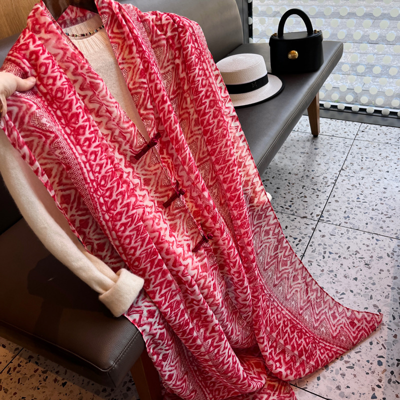 새로운 중국식 버클 레드 스카프 여자 여름 올 매치 스카프 여행 스카프 선 스크린 선쉐드 판초 목도리 스카프스토어 가기