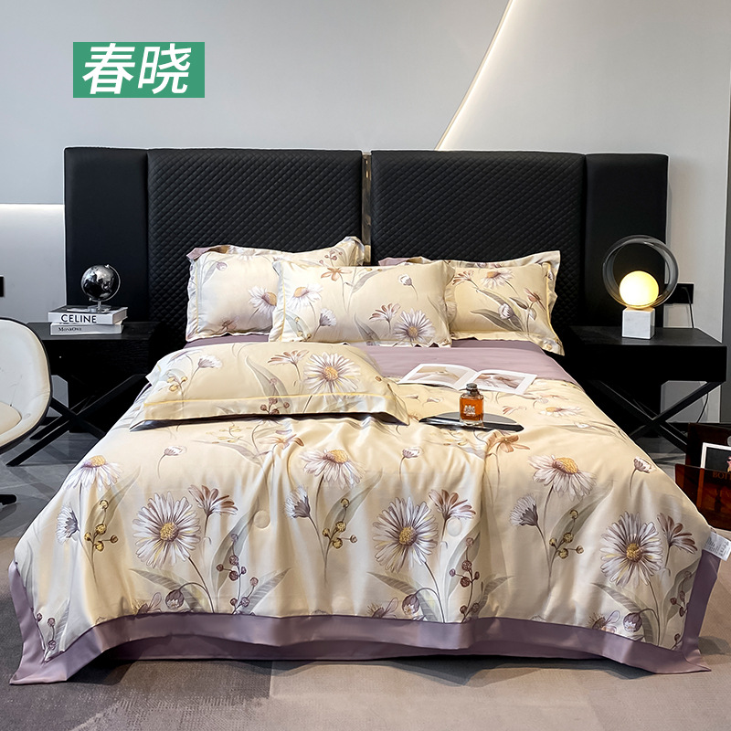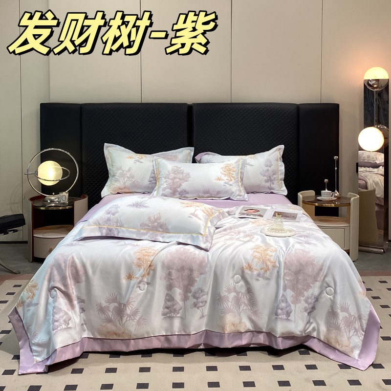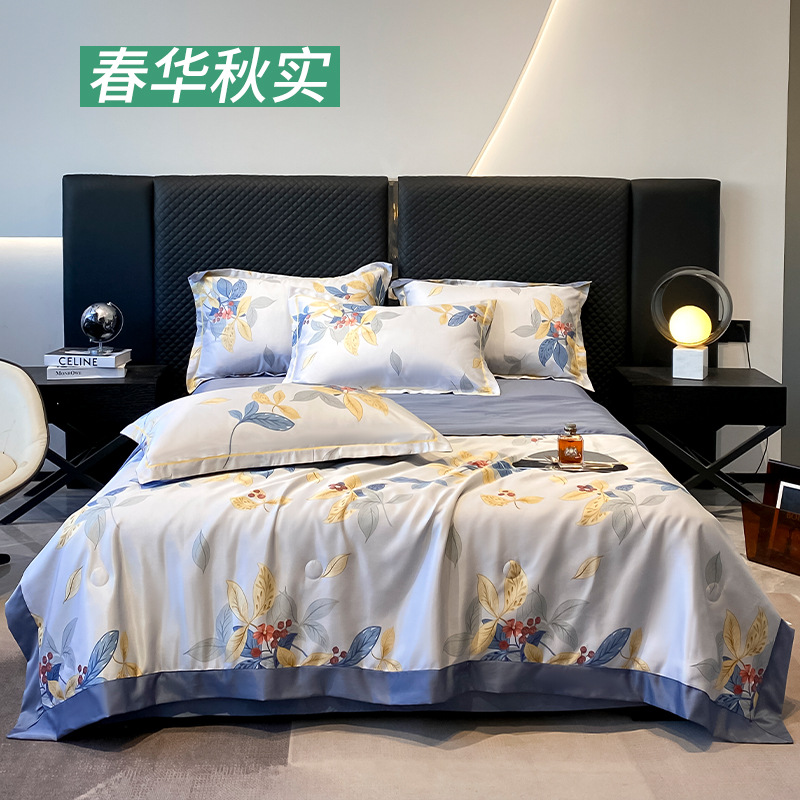 여름 엔트리 럭셔리 세척 텐셀 여름 퀼트 4 피스 세트 아이스 실크 쿨 실크 여름 퀼트 싱글 더블 실크 얇은 퀼트 코어