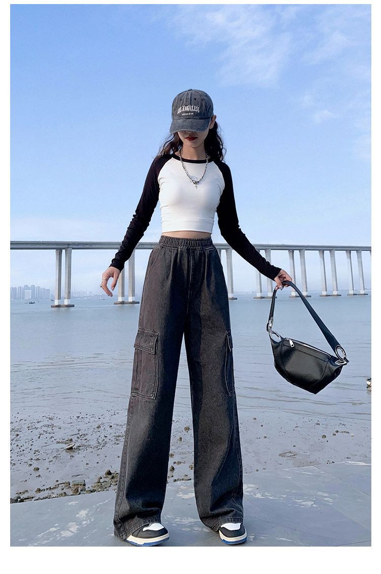 통통한 소녀를위한 대형 툴링 데님 바지 와이드 엘라 스토 하이 허리 스트레이트 레그 슬림 룩 국경 간 여성용 청바지스토어 가기