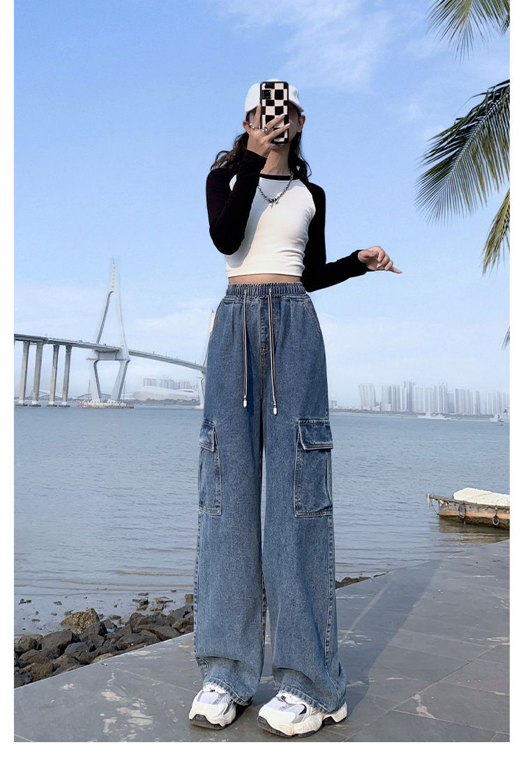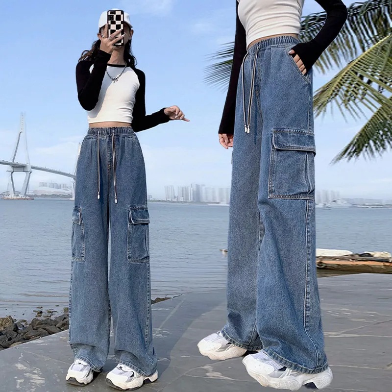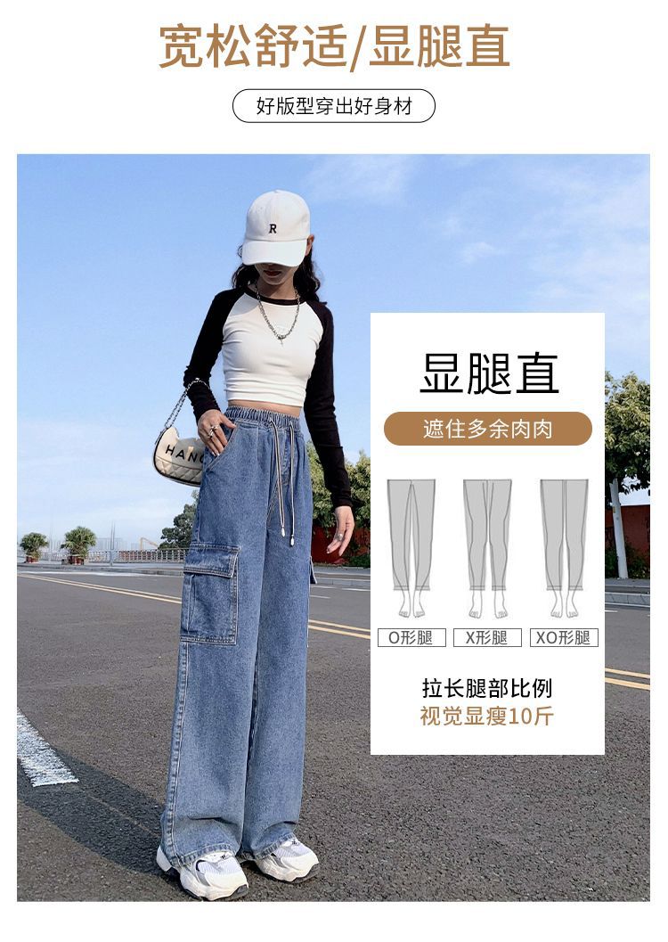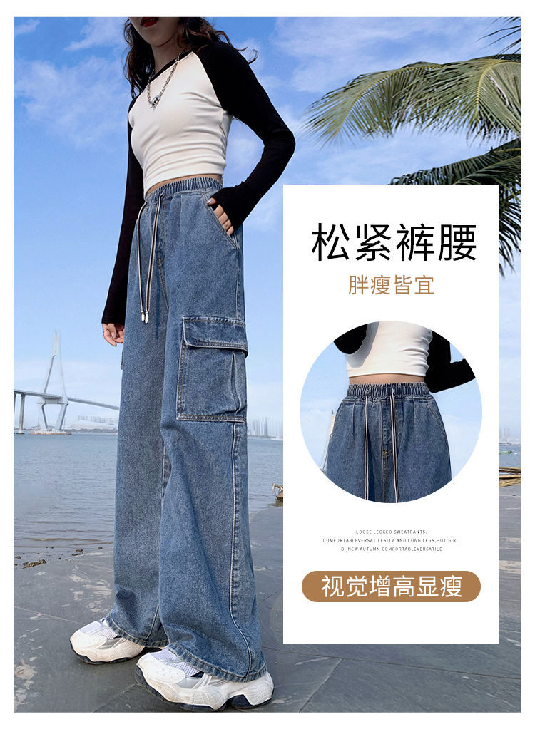 통통한 소녀를위한 대형 툴링 데님 바지 와이드 엘라 스토 하이 허리 스트레이트 레그 슬림 룩 국경 간 여성용 청바지