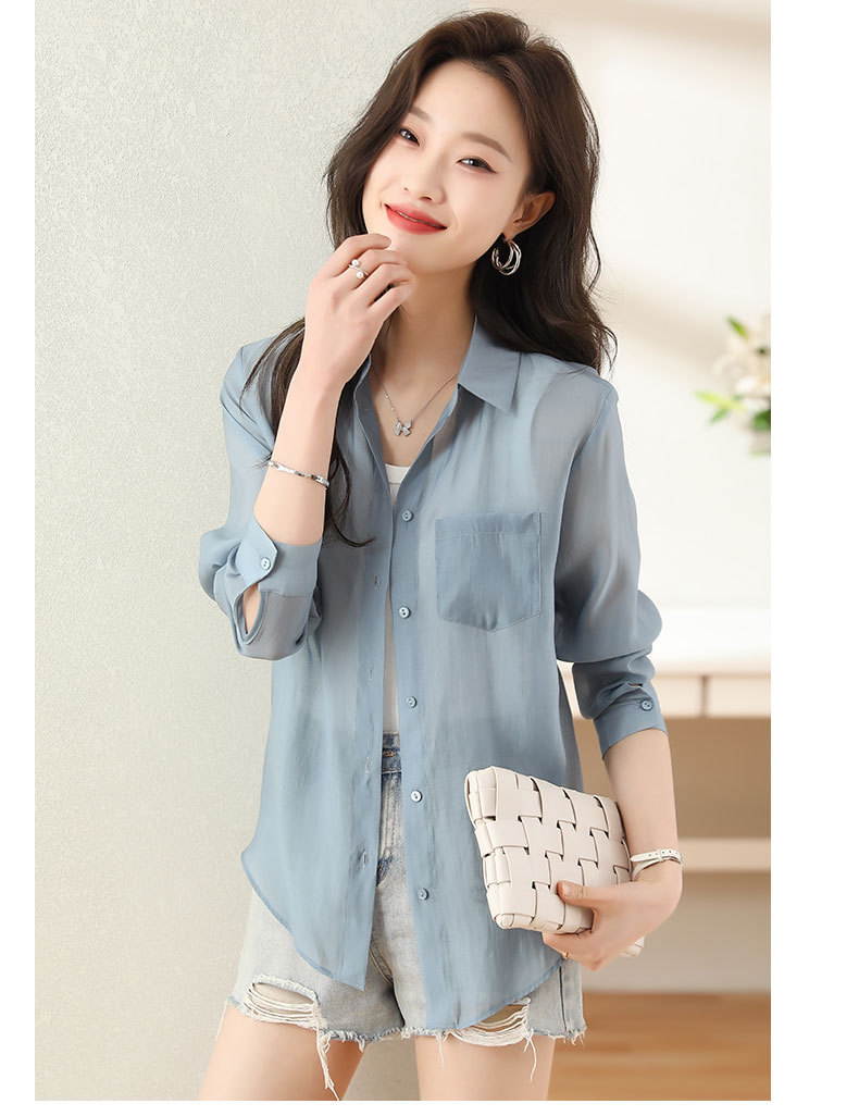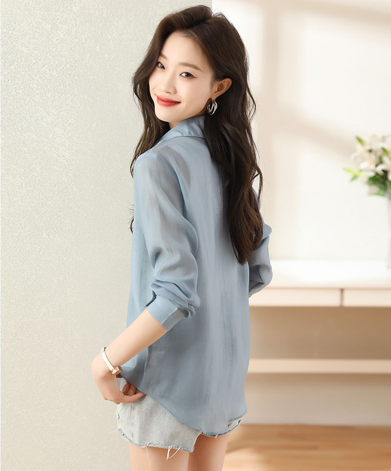프랑스 허리 긴 소매 셔츠 여성의 2024 여름 새로운 한국 패션 디자인 센스 싱글 브레스트 선 스크린 탑스토어 가기