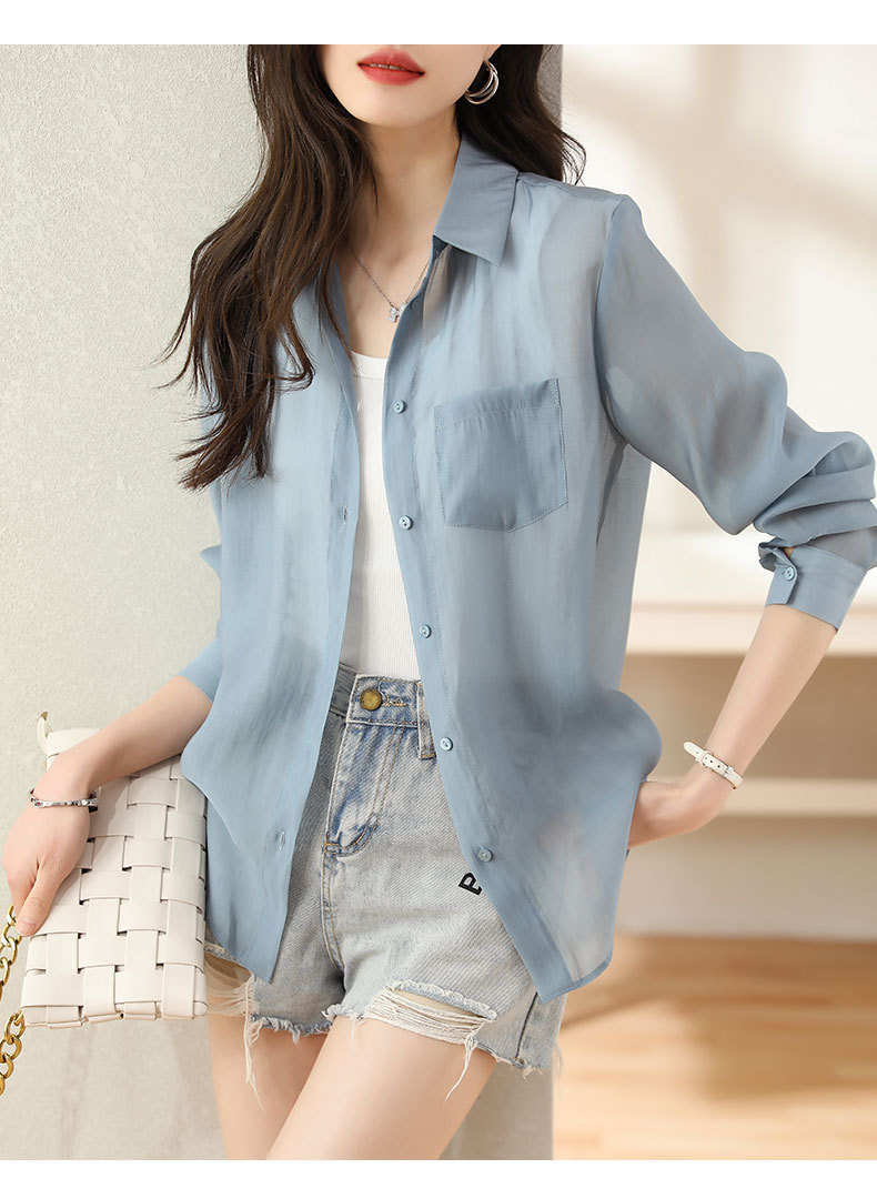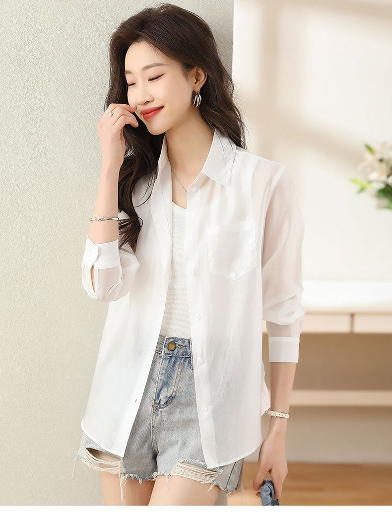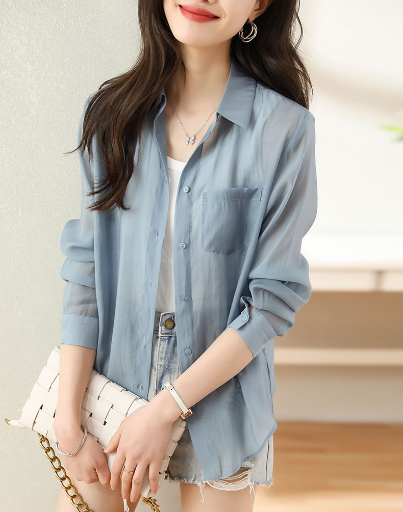 프랑스 허리 긴 소매 셔츠 여성의 2024 여름 새로운 한국 패션 디자인 센스 싱글 브레스트 선 스크린 탑