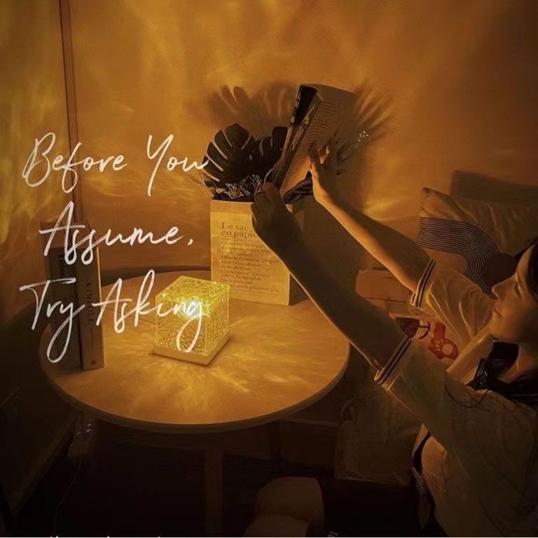 광장 물 리플 분위기 램프 나이트 라이트 창조적 인 소녀 선물 침대 옆 침실 불꽃 오로라 동적 테이블 램프스토어 가기