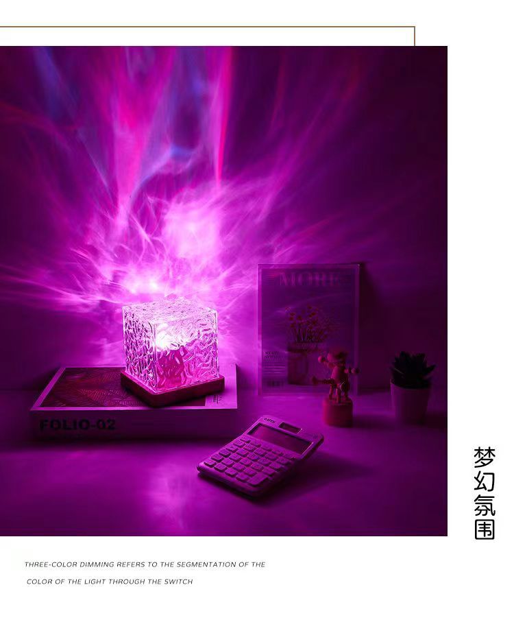 광장 물 리플 분위기 램프 나이트 라이트 창조적 인 소녀 선물 침대 옆 침실 불꽃 오로라 동적 테이블 램프