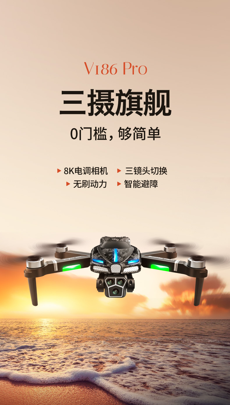 국경 간 V186 브러시리스 모터 UAV 3 카메라 항공 사진 항공기 긴 내구성 원격 제어 항공기 대외 무역 장난감스토어 가기