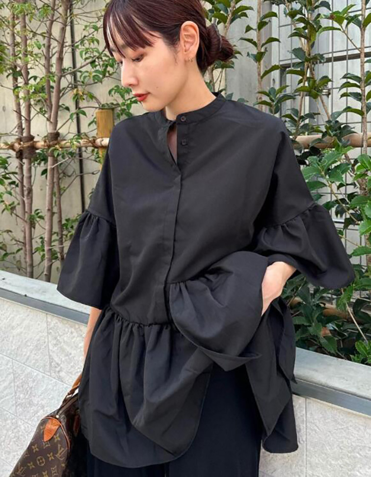 2024 Spring New Lotte Ins 뜨거운 판매 느슨한 슬리밍 일본식 단색 쉬폰 셔츠 러플 셔츠 탑