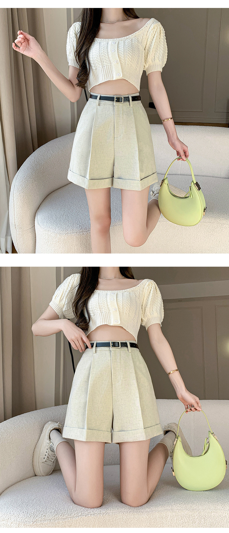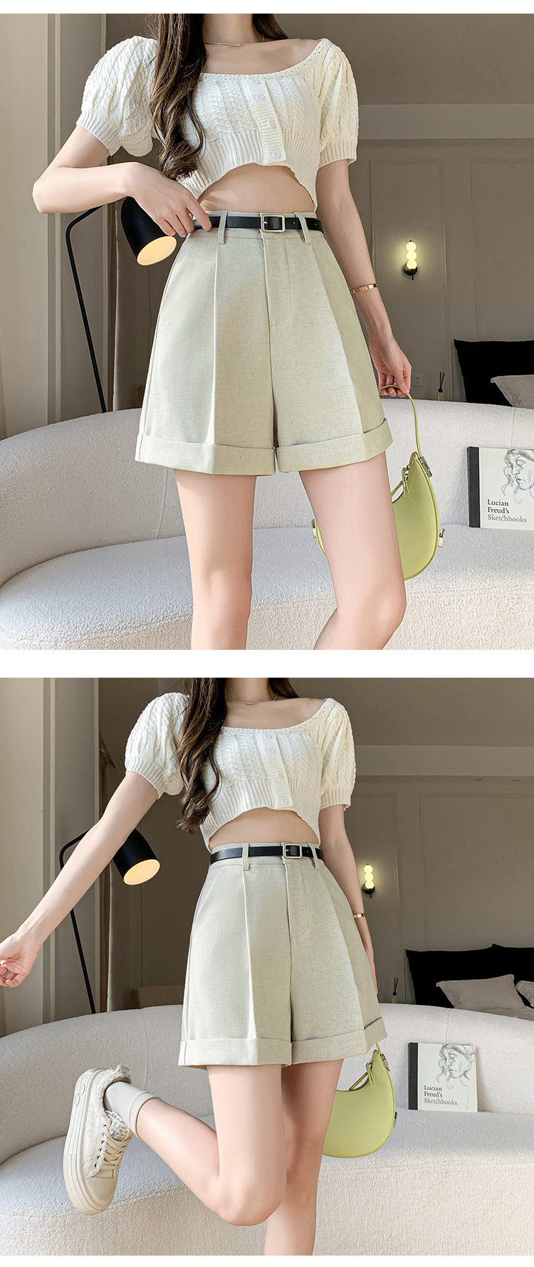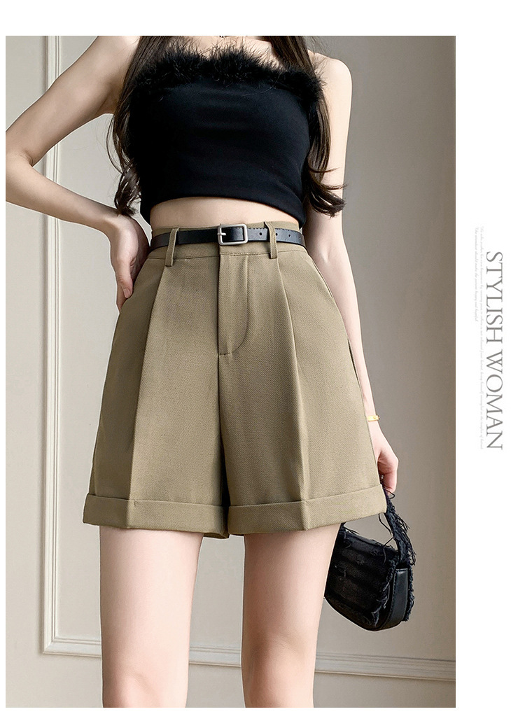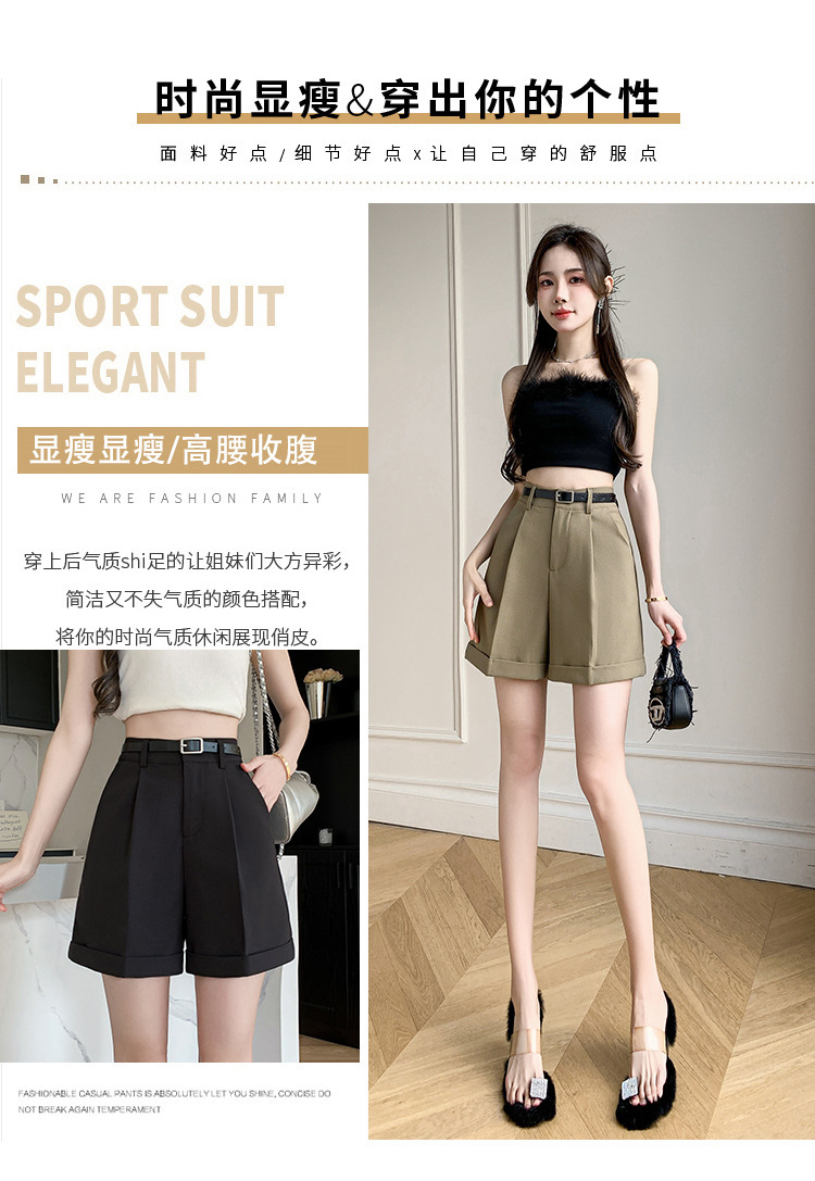 세트 반바지 여성의 봄과 여름 아우터웨어 2024 새로운 도착 느슨한 스트레이트 와이드 레그 팬츠 높은 허리 슬림 룩 5 점 중간 길이 바지