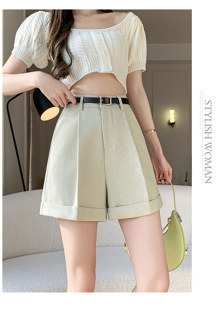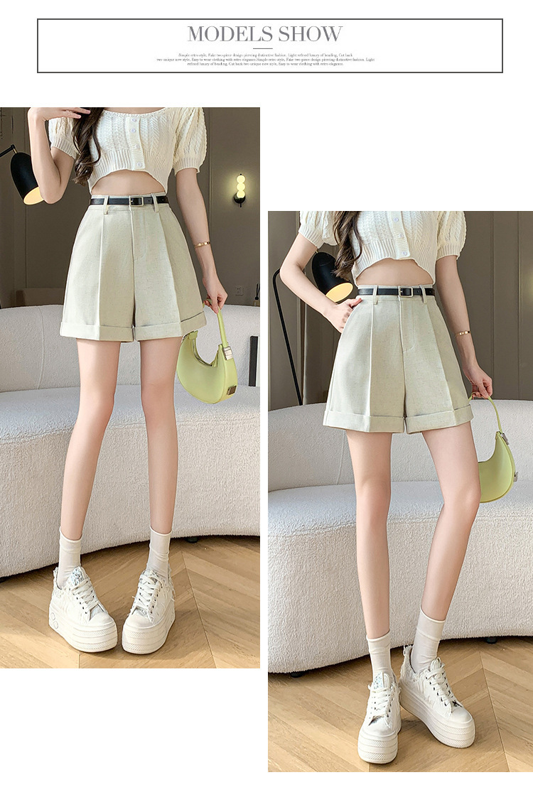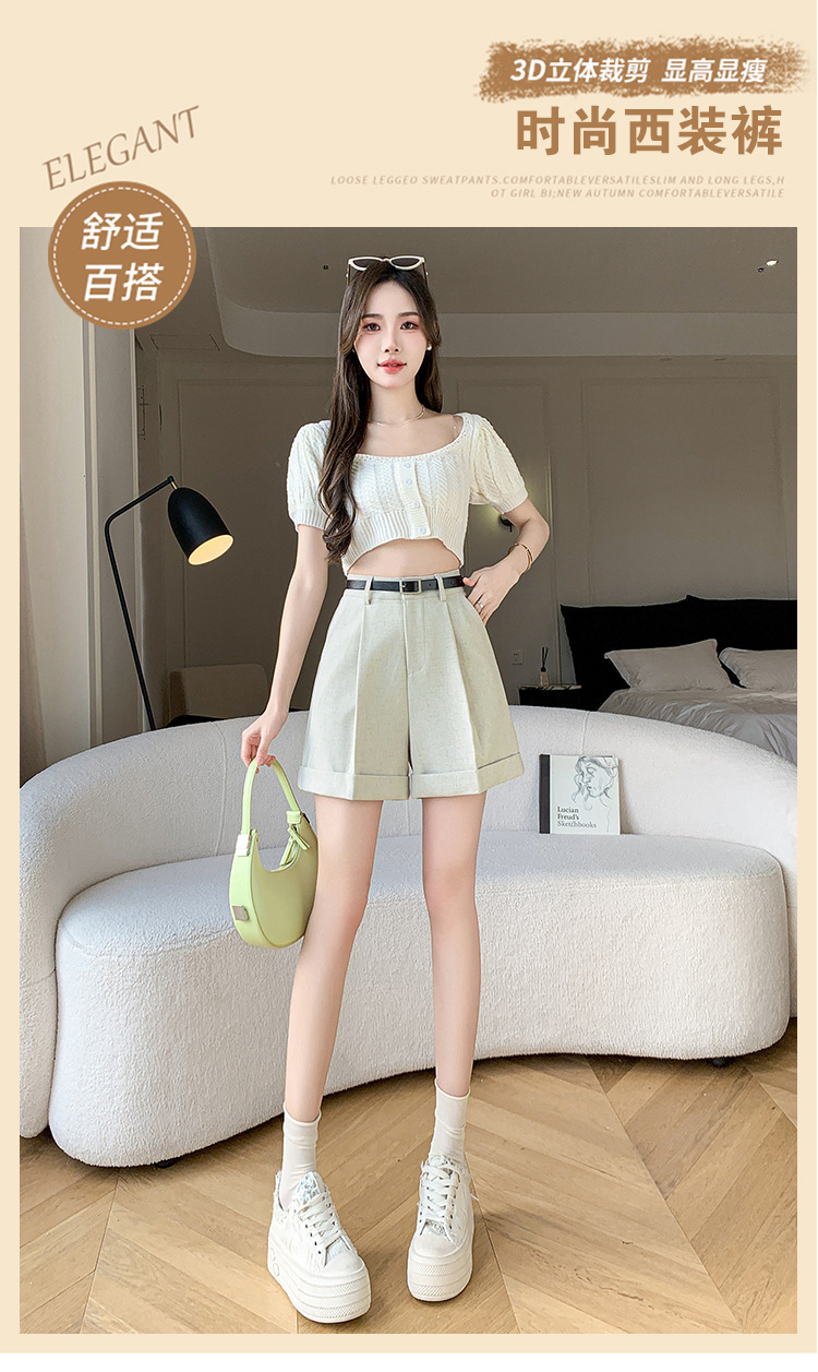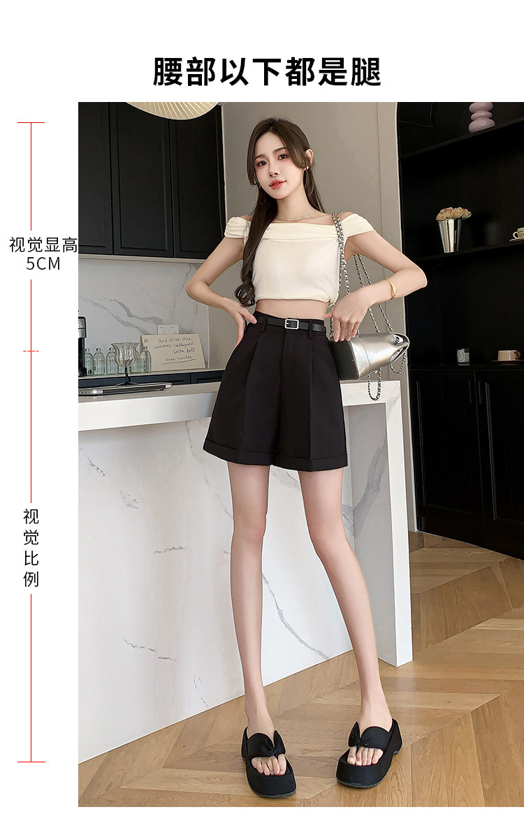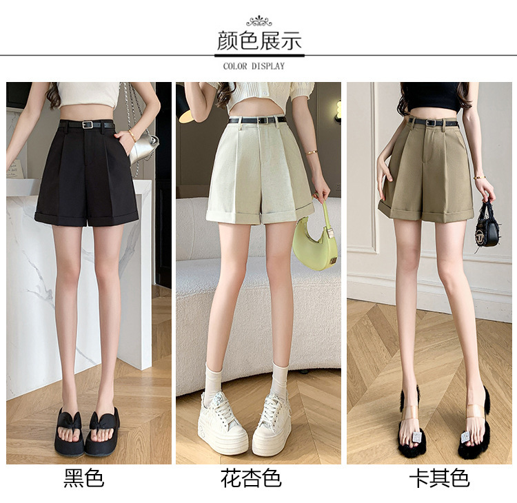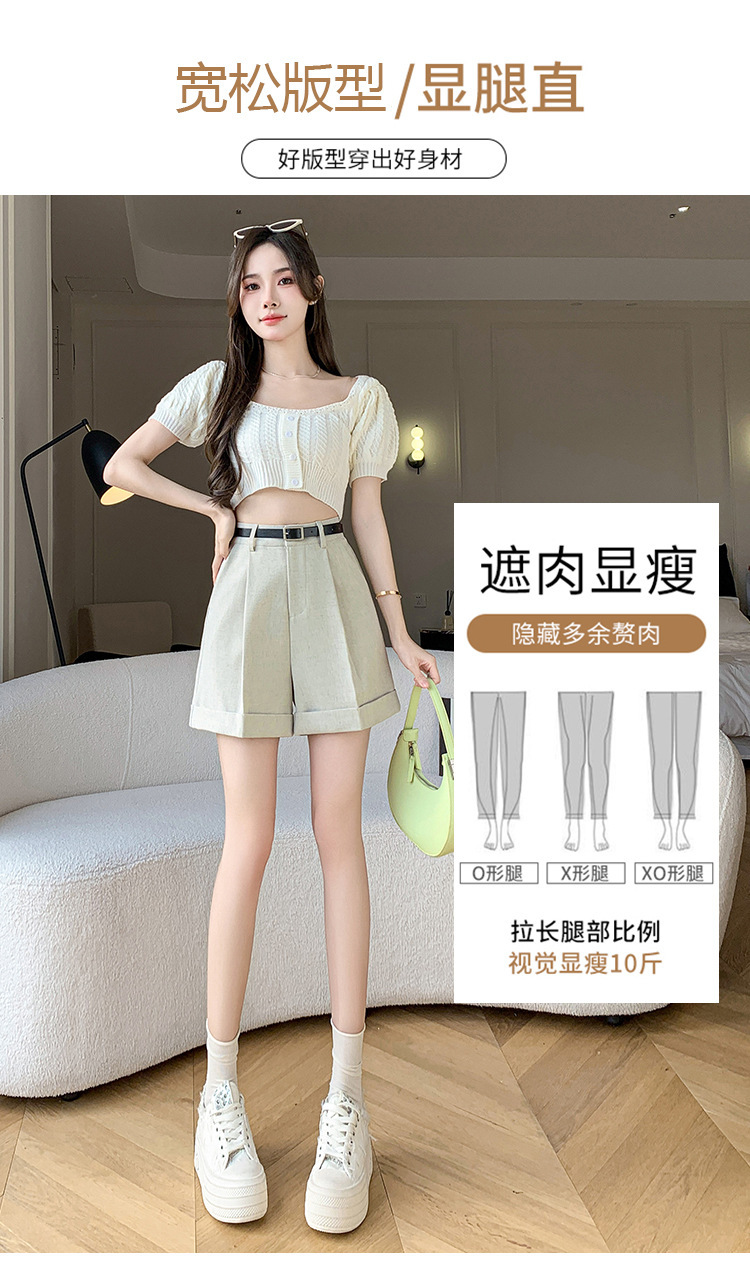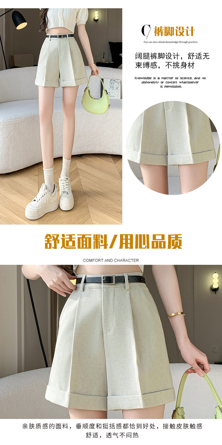 세트 반바지 여성의 봄과 여름 아우터웨어 2024 새로운 도착 느슨한 스트레이트 와이드 레그 팬츠 높은 허리 슬림 룩 5 점 중간 길이 바지스토어 가기