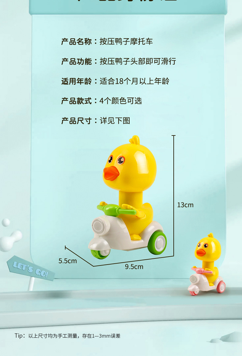 어린이 누르는 오리 오토바이 장난감 아기 2 아기 소년과 소녀 0-1 세 3 관성 뒷차