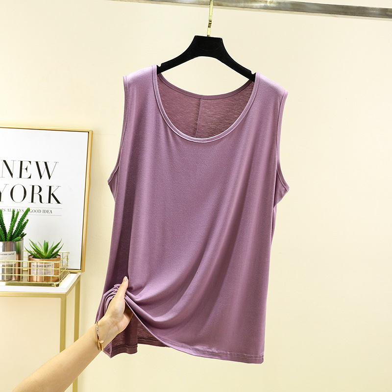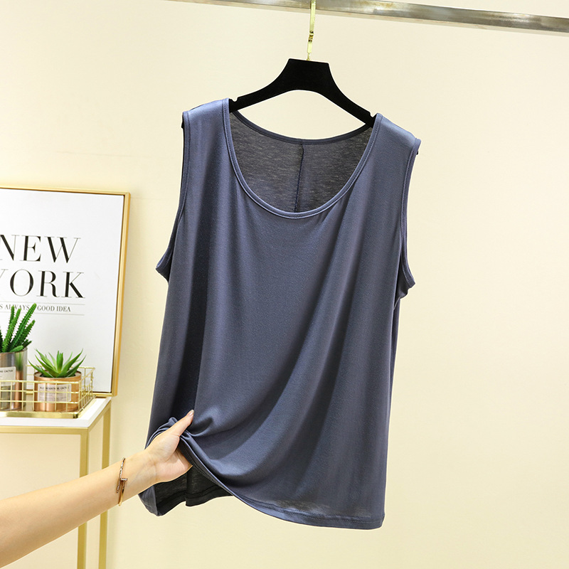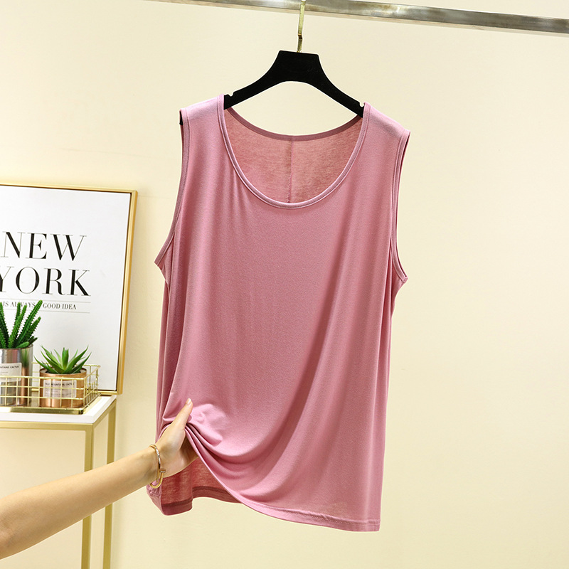 모달 카미솔 여자 여름 얇은 느슨한 플러스 사이즈 외부 착용 민소매 탑 솔리드 컬러 올매치 베이스 셔츠