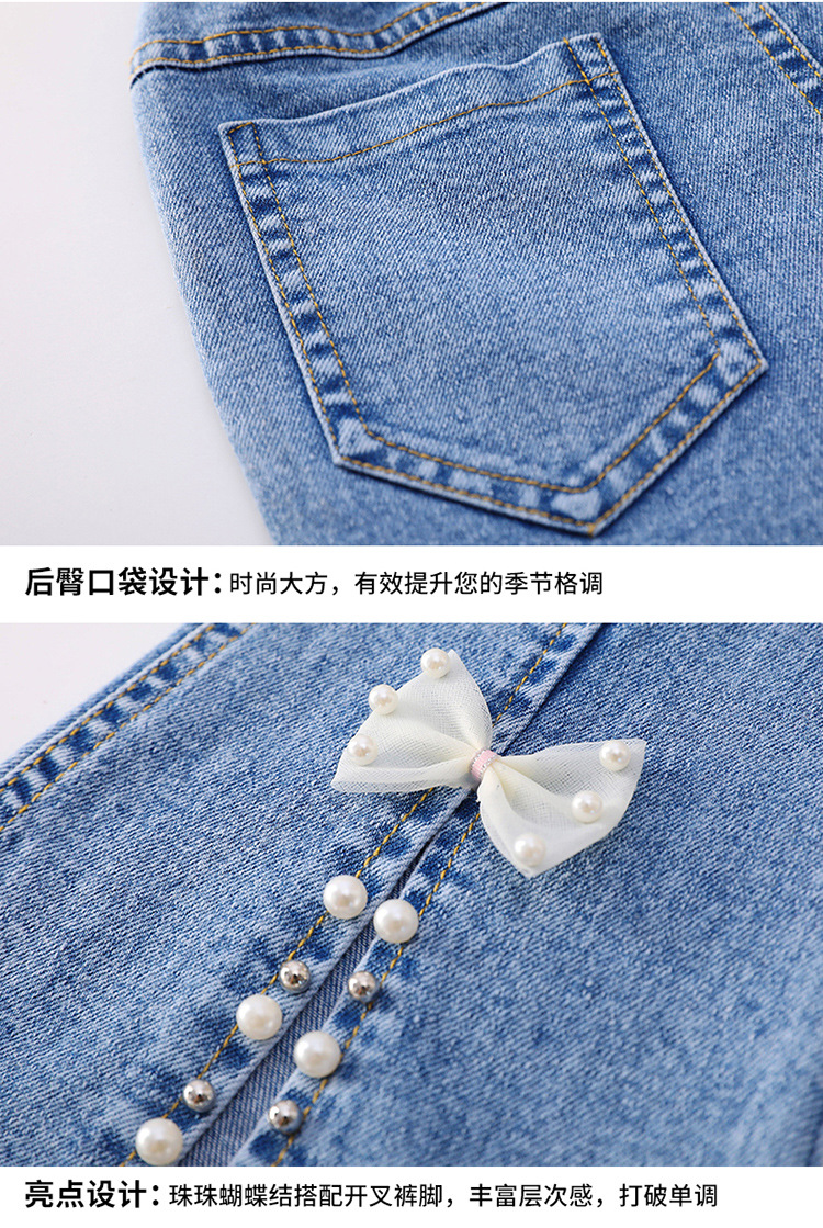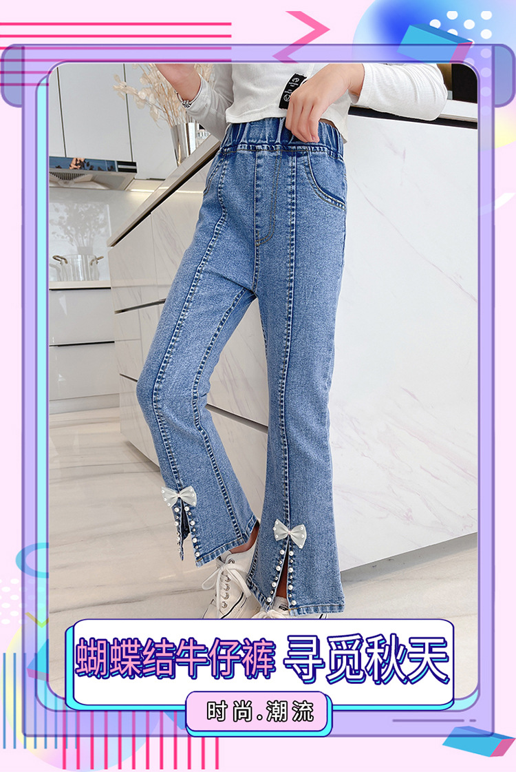 소녀의 봄 스트레치 구슬 청바지 2024 새로운 어린이 캐주얼 바지 뿔 긴 바지 봄과 가을스토어 가기